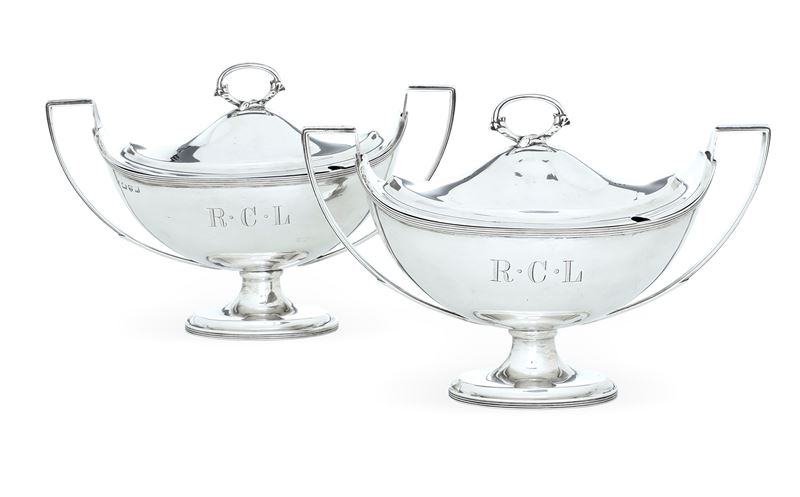 Coppia di salsiere. Chester 1896, marchio dell'argentiere non identificato