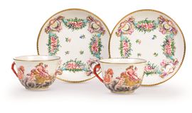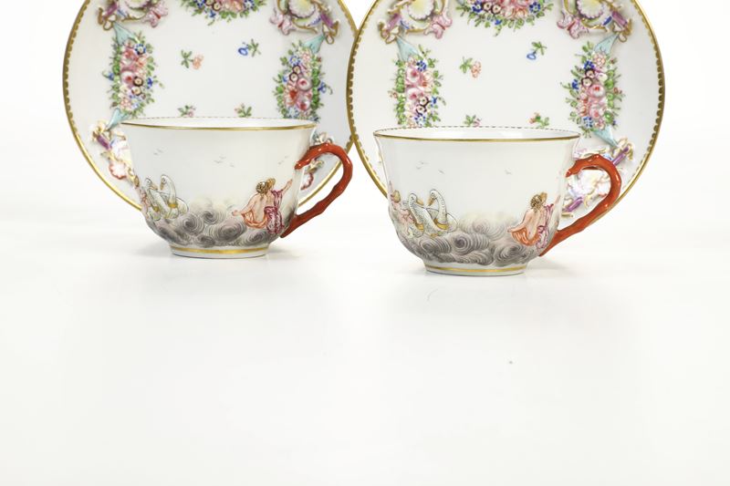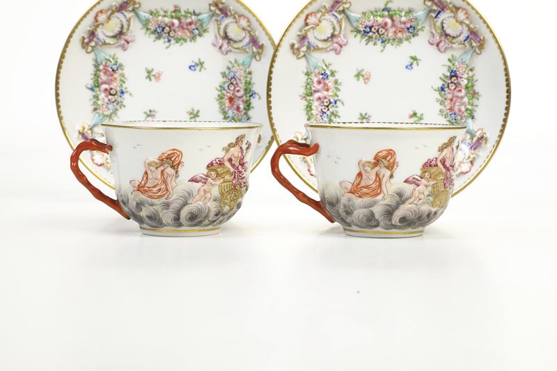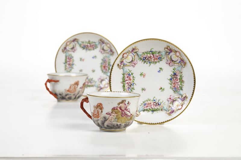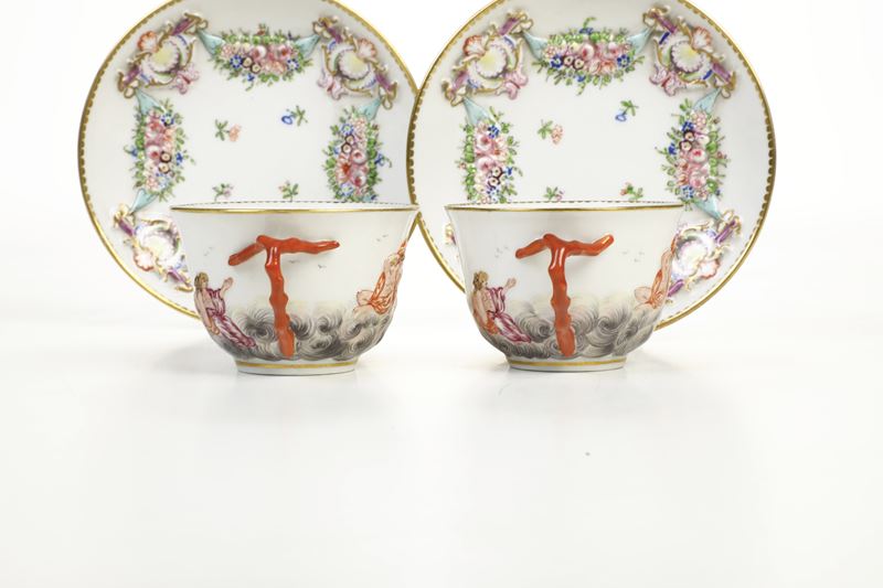 Coppia di tazze con piattino Doccia, Manifattura Ginori, XIX secolo