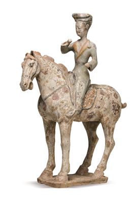 Figura di dignitario a cavallo in terracotta con tracce di policromia, Cina, Dinastia Tang (618-906)