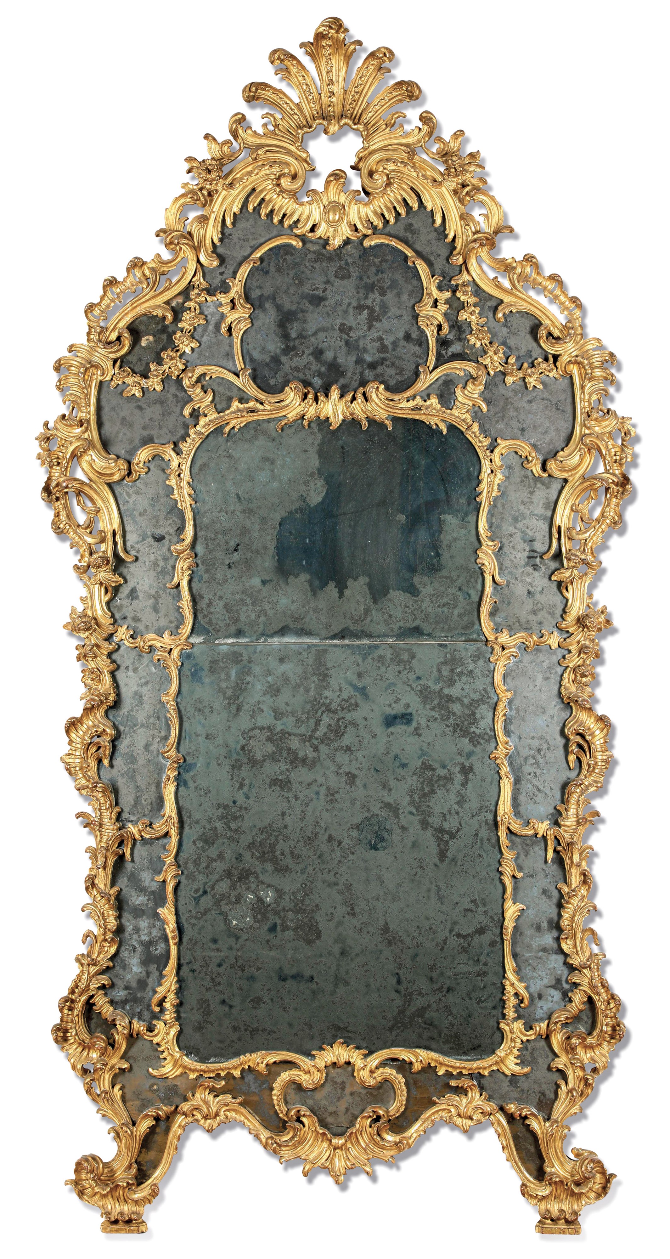 Grande specchiera a doppio ordine di intaglio. Piemonte, metà XVIII secolo