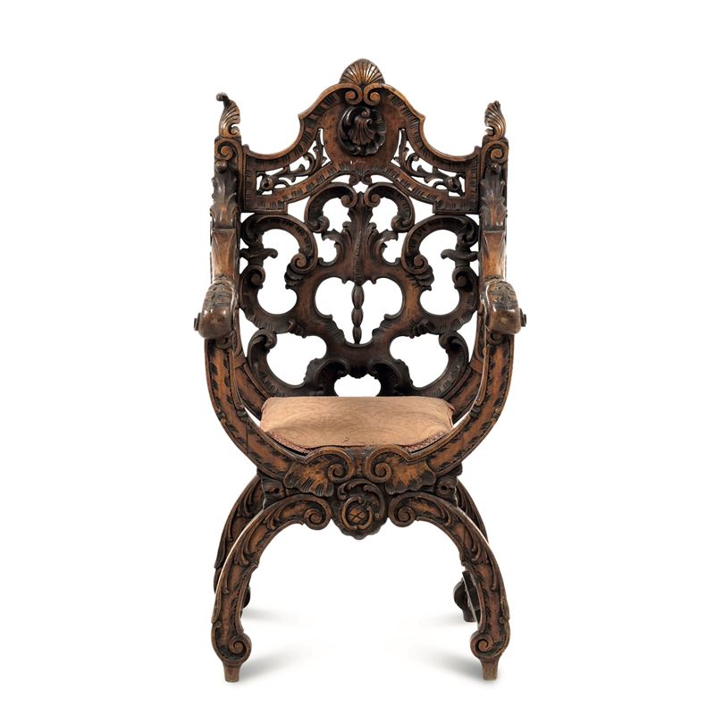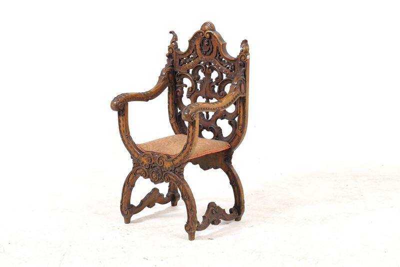 Poltrona in legno intagliato. XIX secolo