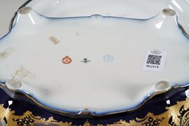 Porcellana e bronzo dorato. Marca: diverse marche apocrife di Sèvres. Dimensioni: 16,5; cm 32x22. Conservazione: montatura della chiusura in bronzo incollata