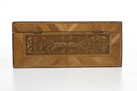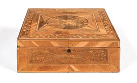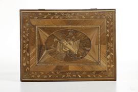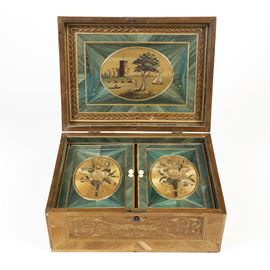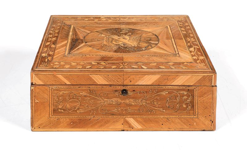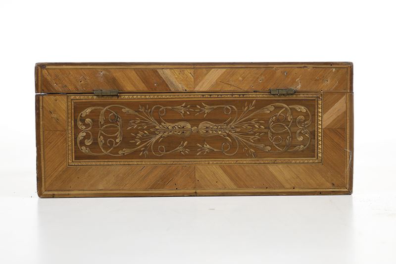 Scatola in paglia intarsiata e filettata. XIX secolo