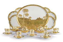 Porcellana bianca decorata in oro. Conservazione: ottima; leggere usure all'oro