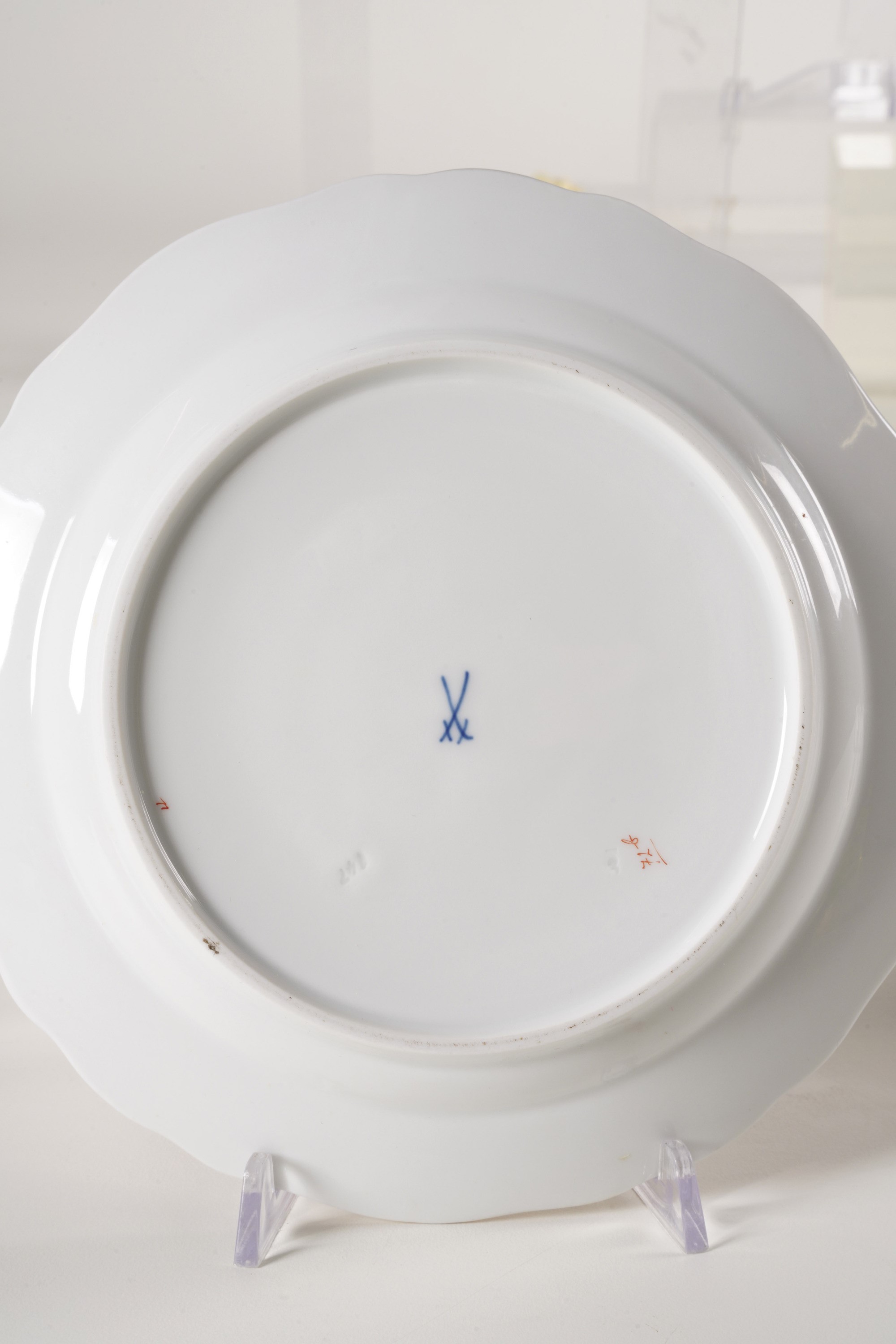 Porcellana. Marca: spade incrociate in blu. Conservazione: ottima; una tazza da tè con una piccola sbeccatura al bordo superiore