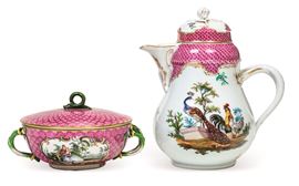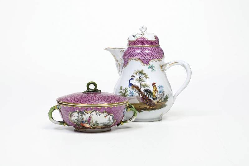 Una cioccolatiera e una tazza da brodo Meissen, XIX secolo