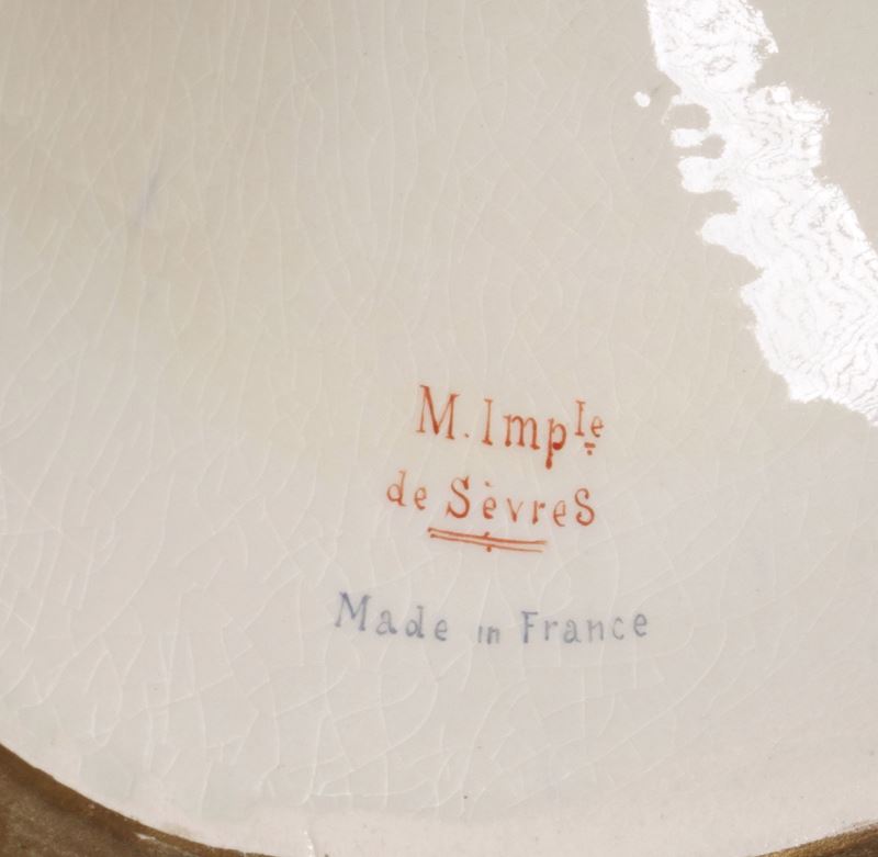 Porcellana e bronzo dorato. Marca: apocrifa di Sèvres con "M.Imple de Sèvres", "Made in France". Altezza cm 82 circa. Conservazione: ottima; due felature sul coperchio; lievi usure all’oro