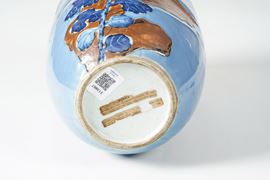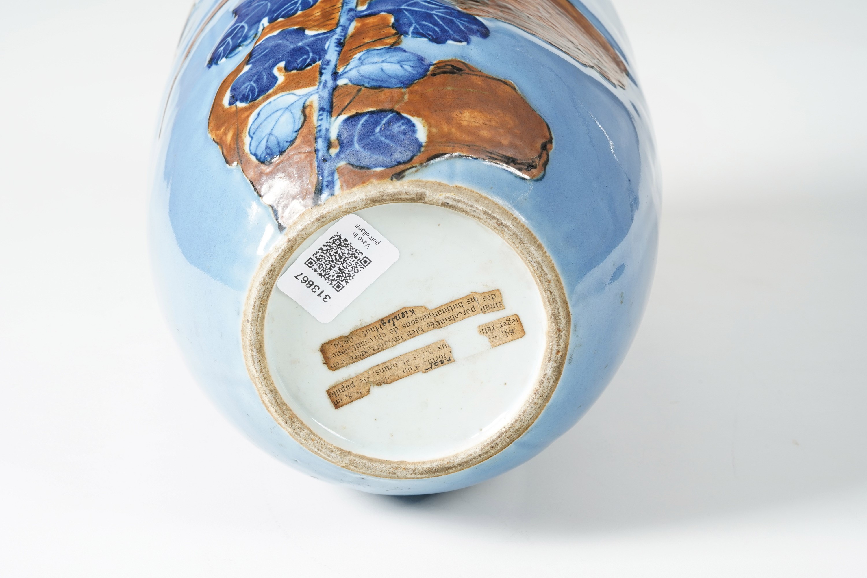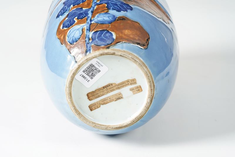 Decorazione policroma a fiori cinesi su fondo blu lavanda