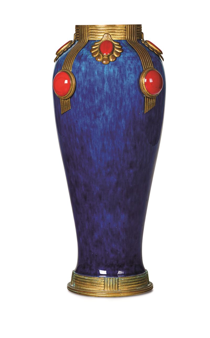 Porcellana e bronzo. Marca: apocrifa di Sèvres con due “L” incrociate con giglio. Altezza cm 32. Conservazione: ottima