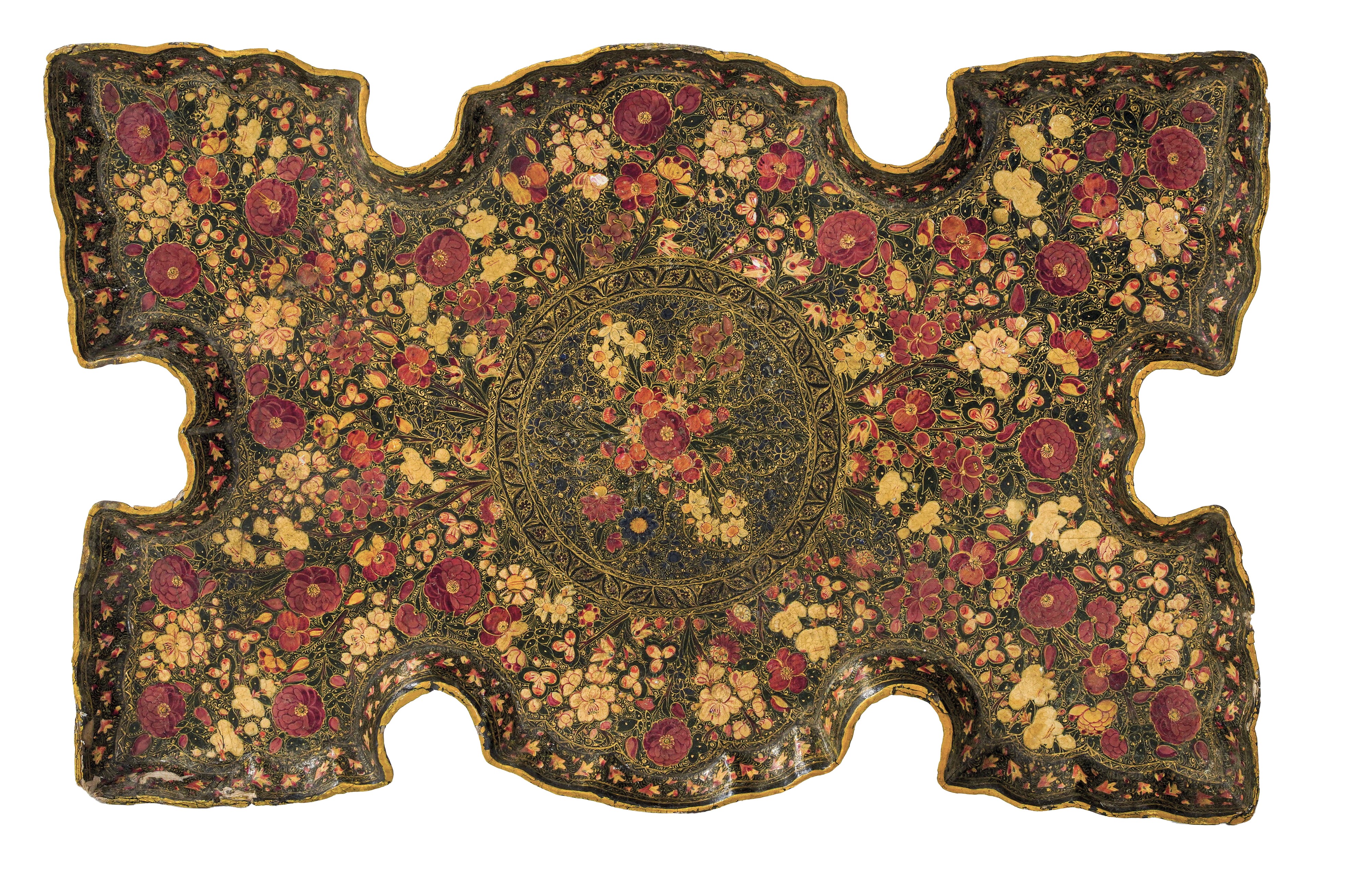 Vassoio in papier-maché. Probabilmente Persia, XVIII secolo
