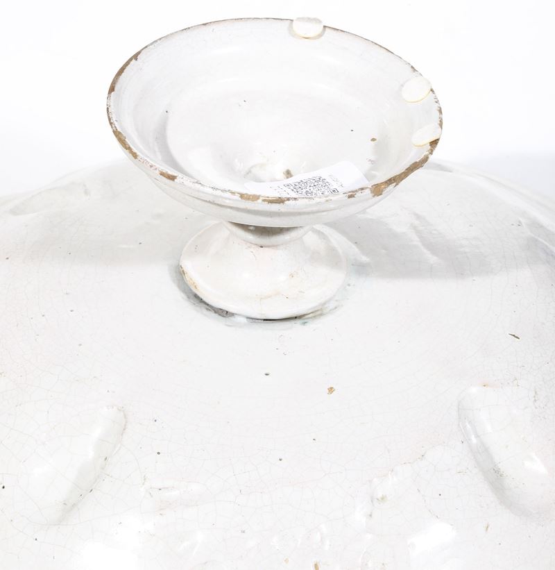 Maiolica. Dimensioni: altezza cm 12,5 circa; diametro cm 31,8. Conservazione: ottima; insignificanti sbeccature ai bordi