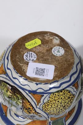 Maiolica. Altezza cm 14,5. Conservazione: buona; sbeccature al bordo superiore riprese in restauro