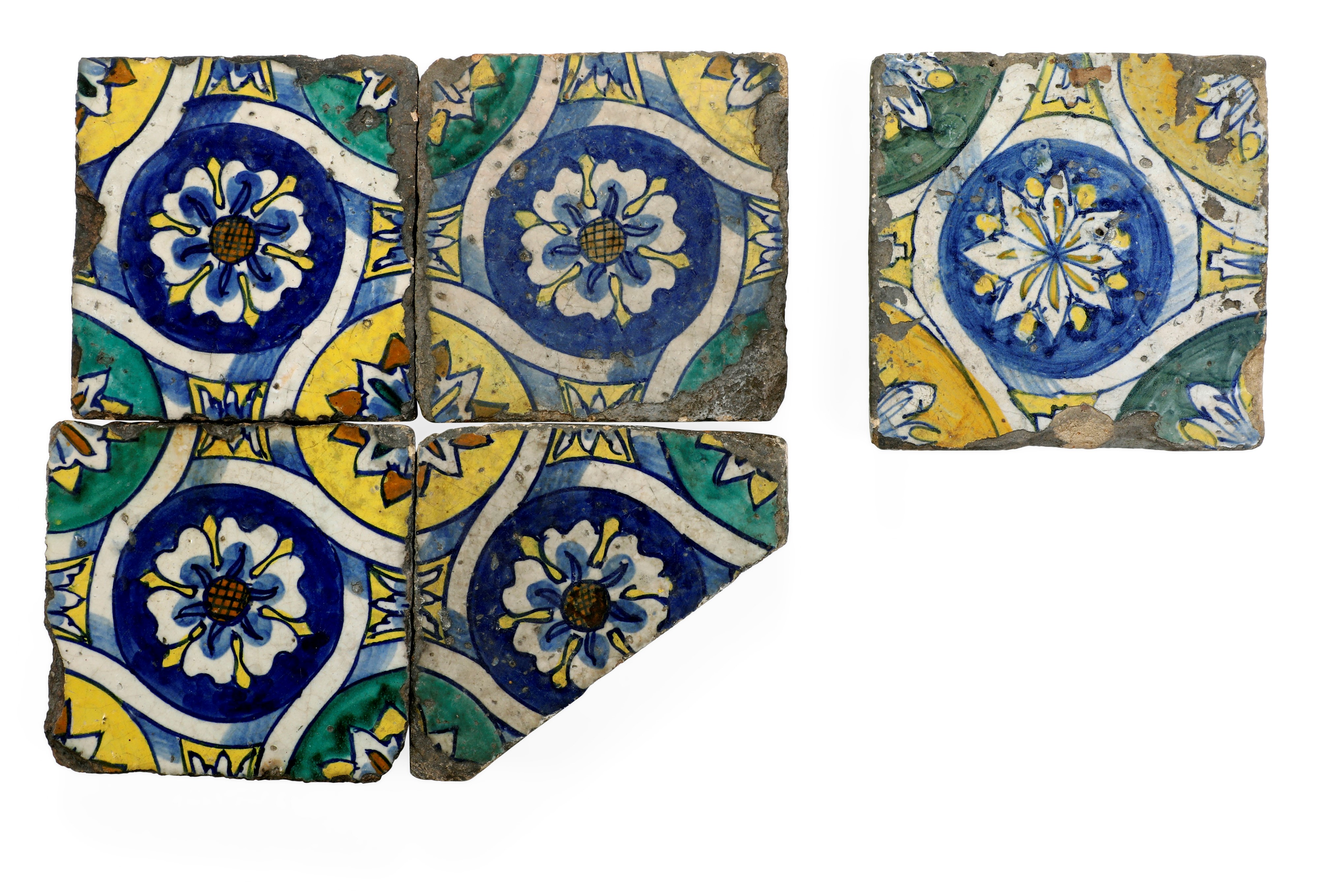 Cinque mattonelle (laggioni) Savona, XVI secolo