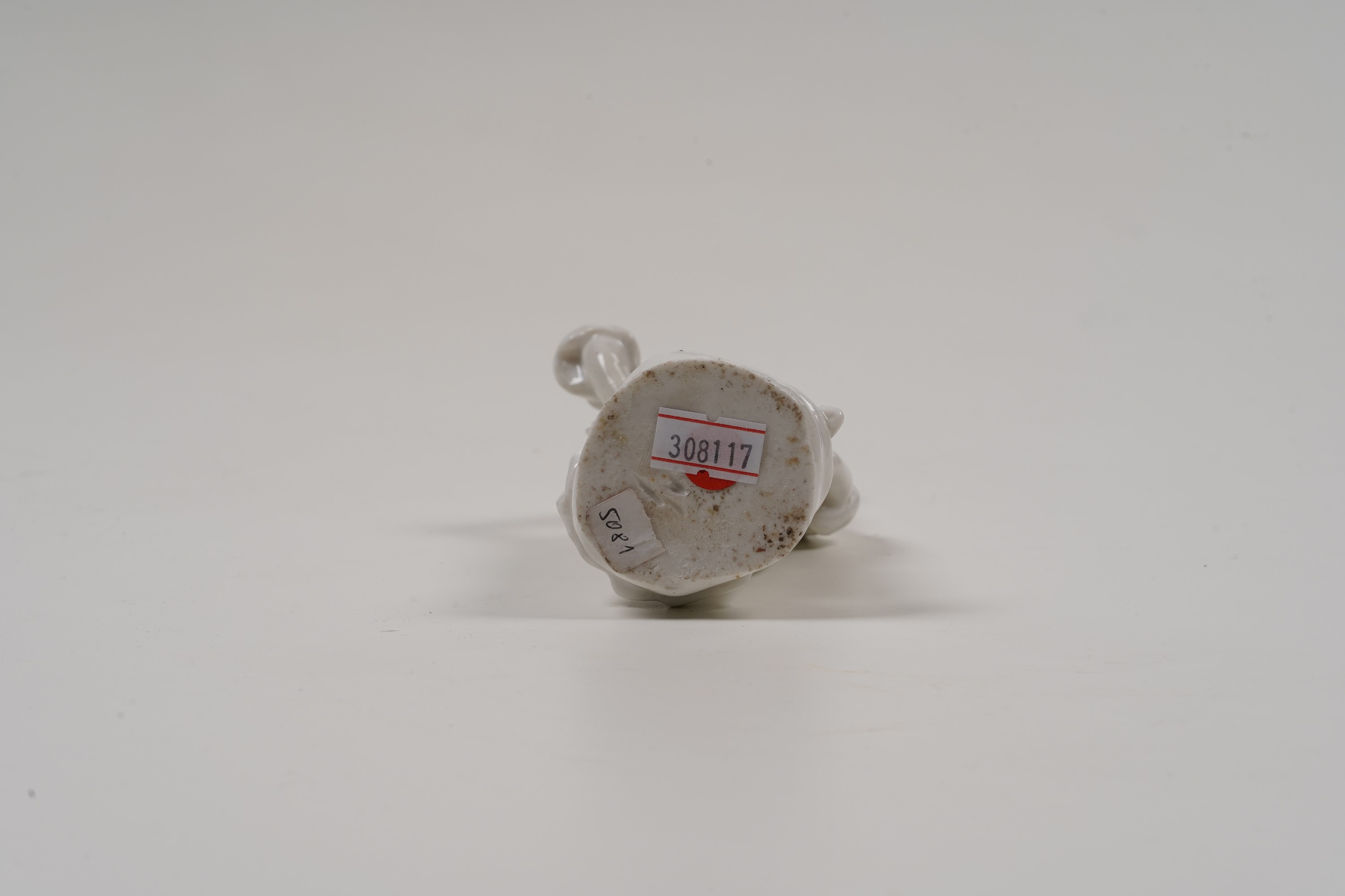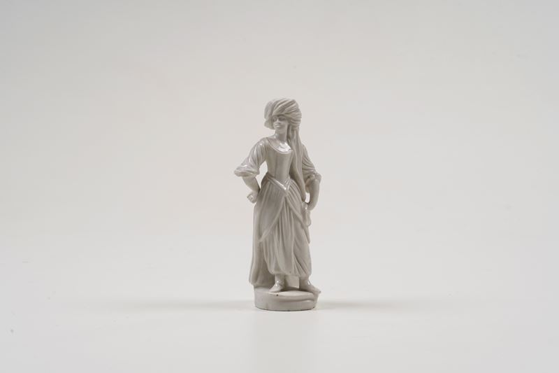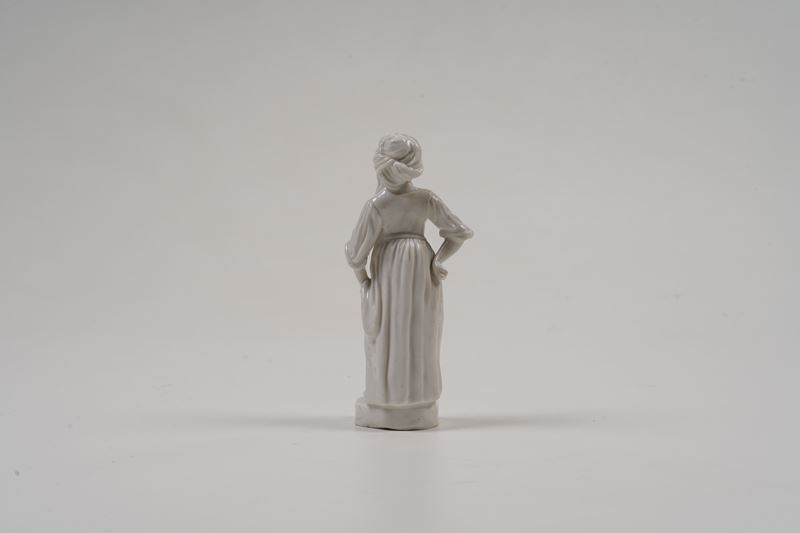 Porcellana bianca. Marca: assente. Altezza cm 15,6. Conservazione: braccio destro restaurato.