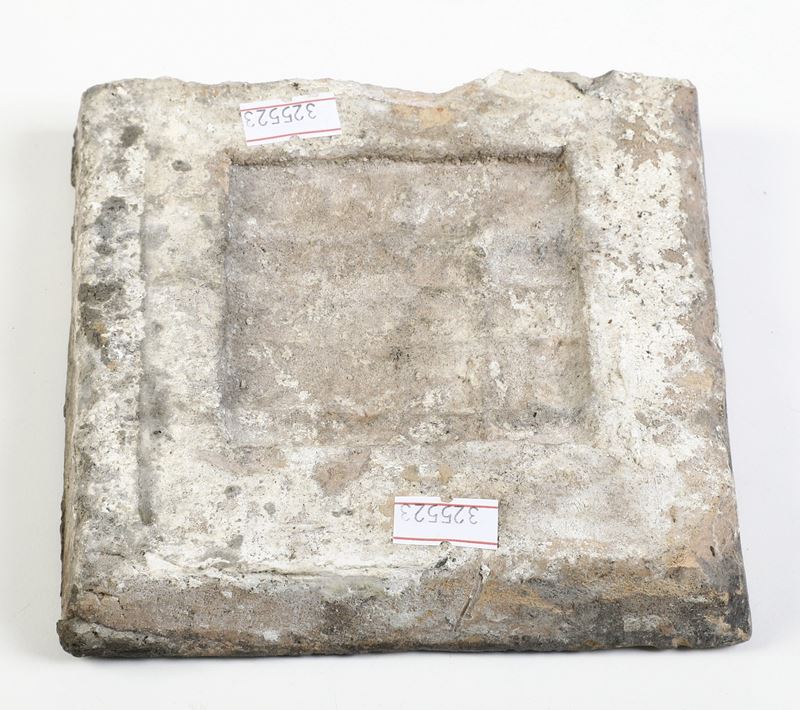 Maiolica. Dimensioni: cm 14x14. Conservazione: insignificanti sbeccature