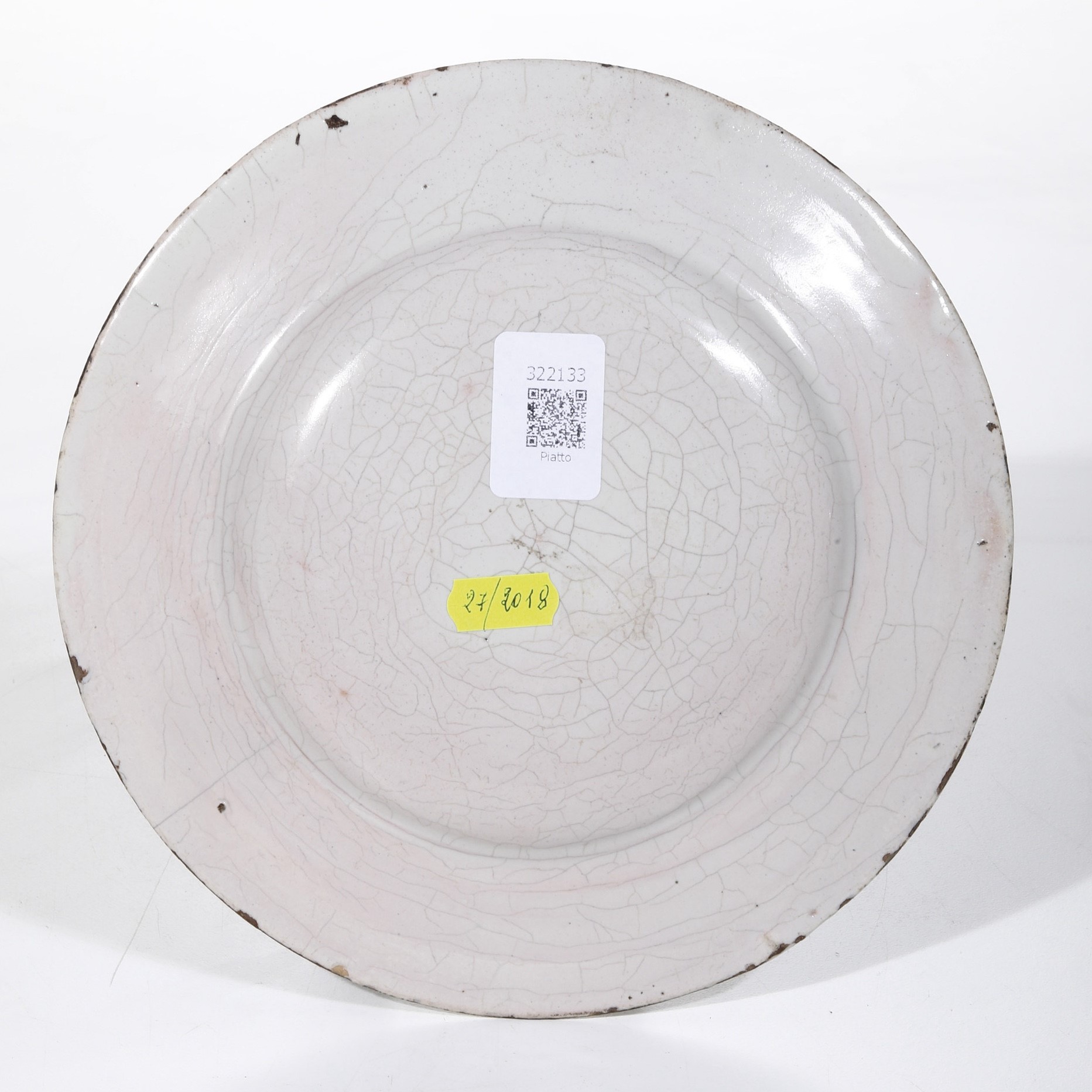 Maiolica. Marca: assente. Diametro cm 22,4. Conservazione: ottima; insignificanti salto di smalto al bordo