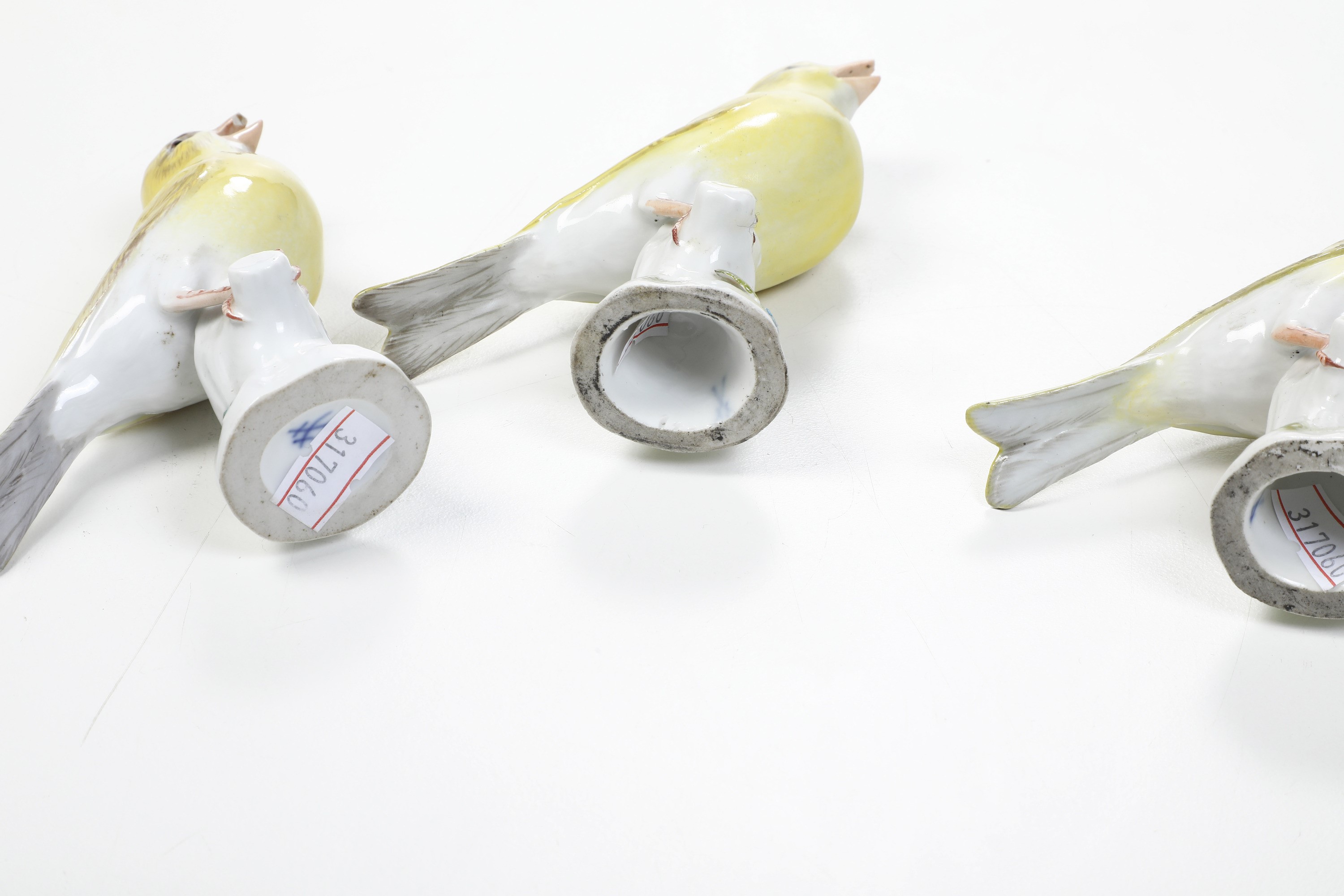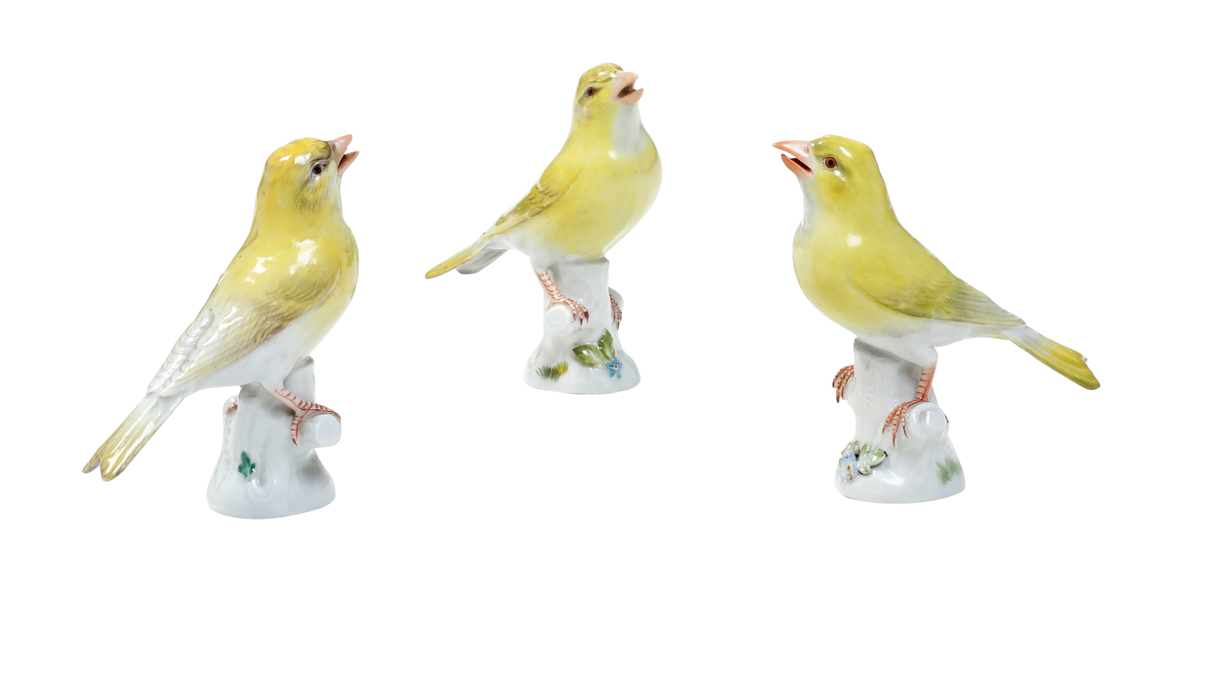 Tre figure di canarino Meissen, circa metà del XX secolo