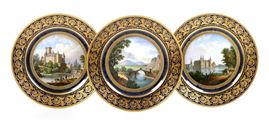 Tre piatti dalla fornitura reale “Vues pittoresques de l’Europe” Sèvres, 1827-1829 circa