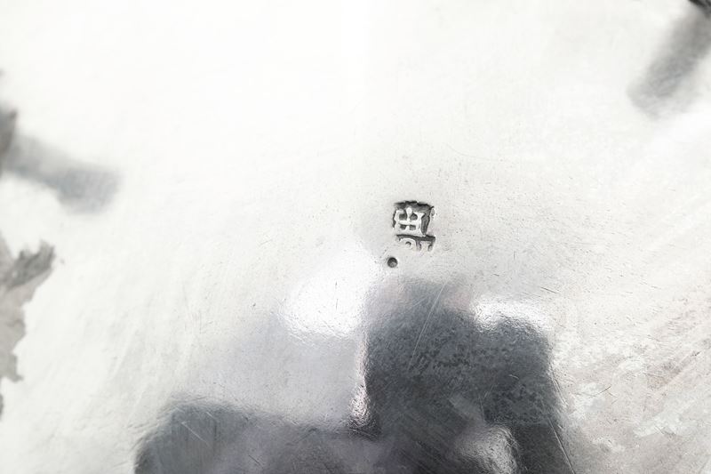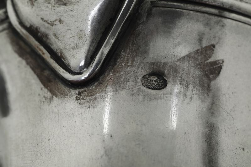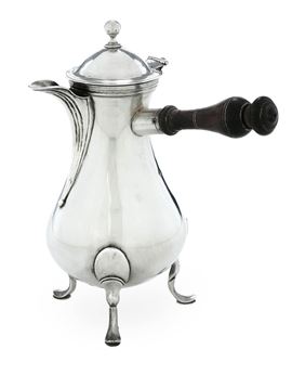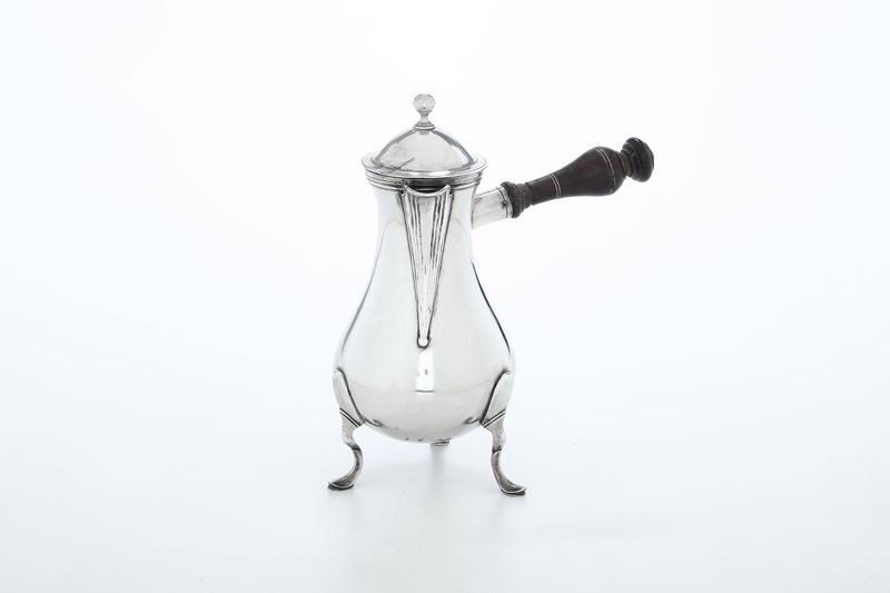 Caffettiera a tripode. Genova fine XVIII secolo, marchio della "Torretta" con datario consunto di difficile lettura (1)781 o (1)791 e marchio di ricontrollo (inizi del XIX secolo)