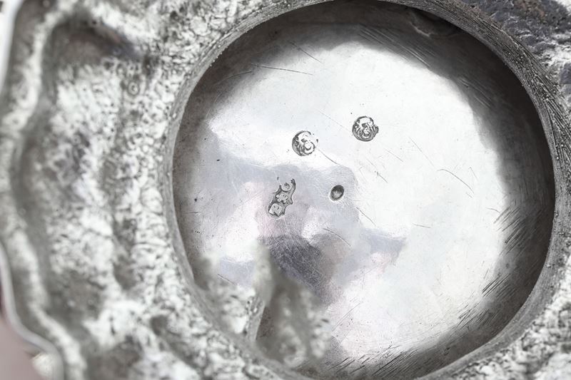Argento fuso, sbalzato e manico in legno ebanizzato