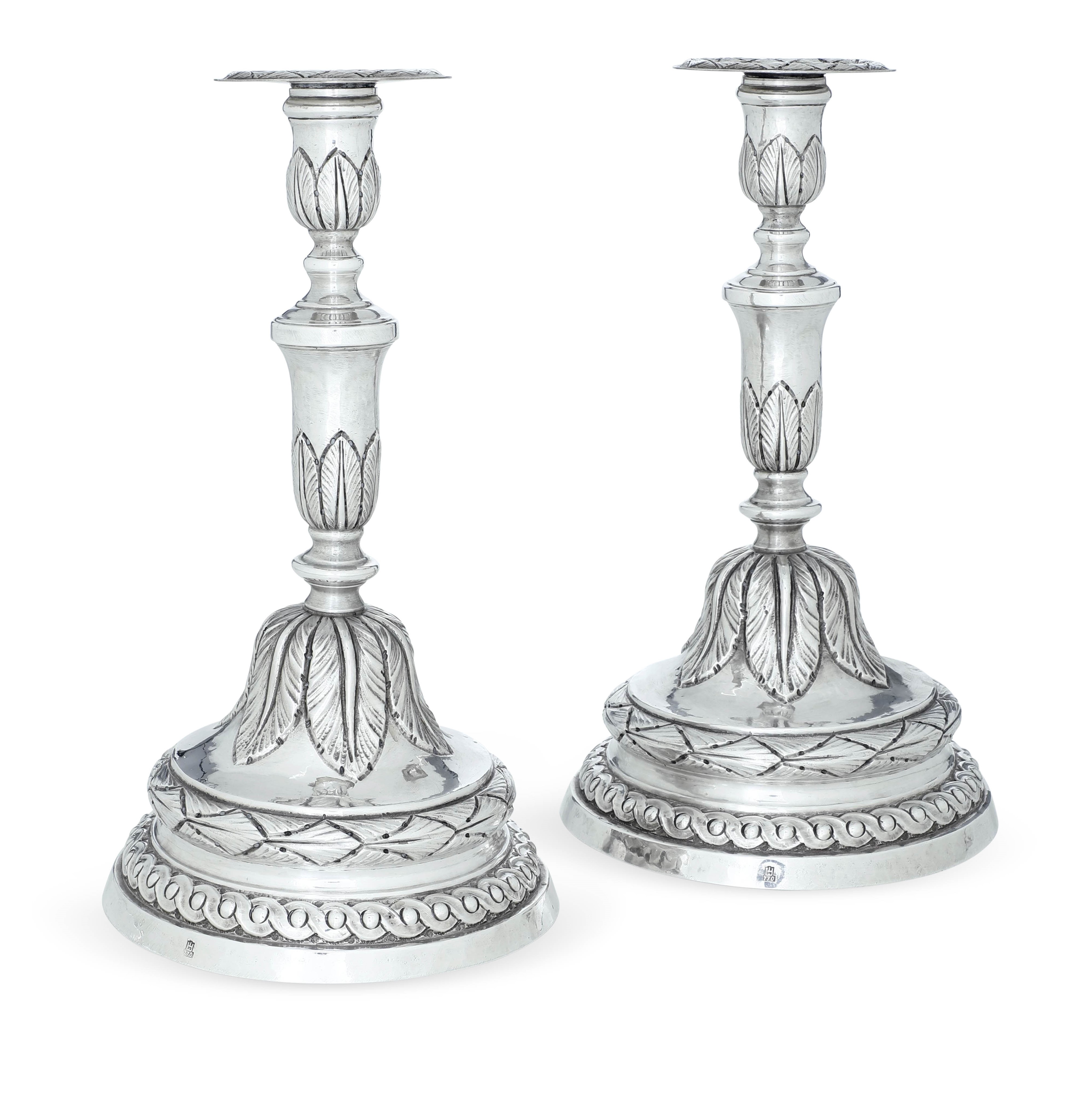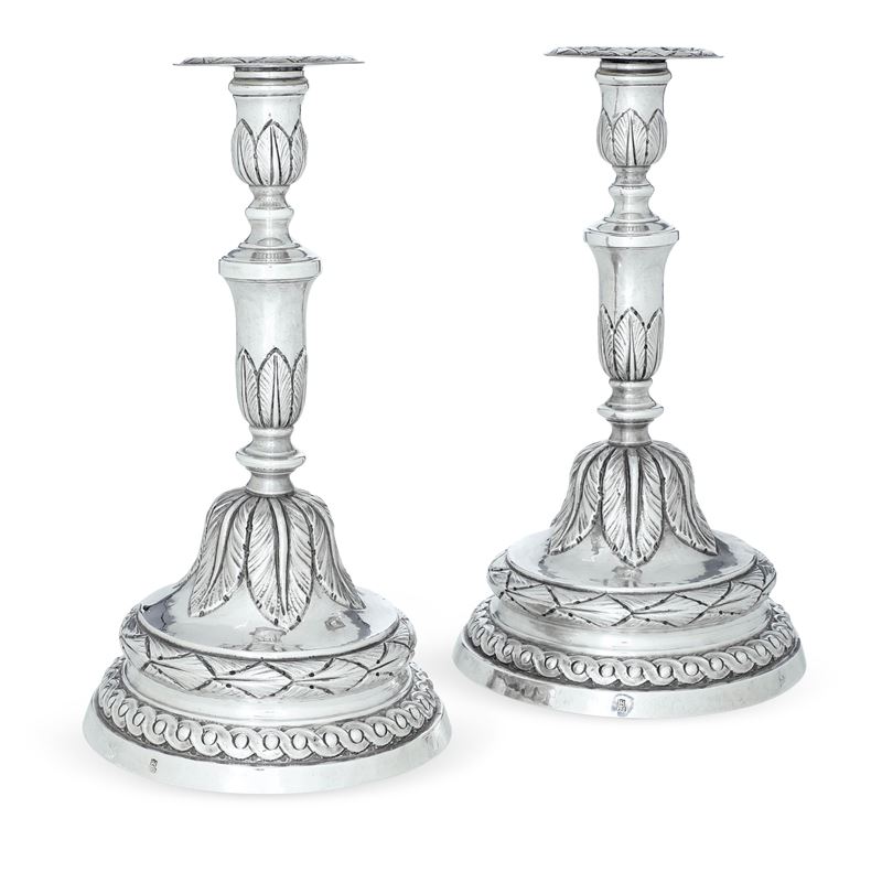 Coppia di candelieri. Genova, marchio della "Torretta" per l'anno (1)770