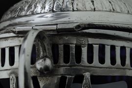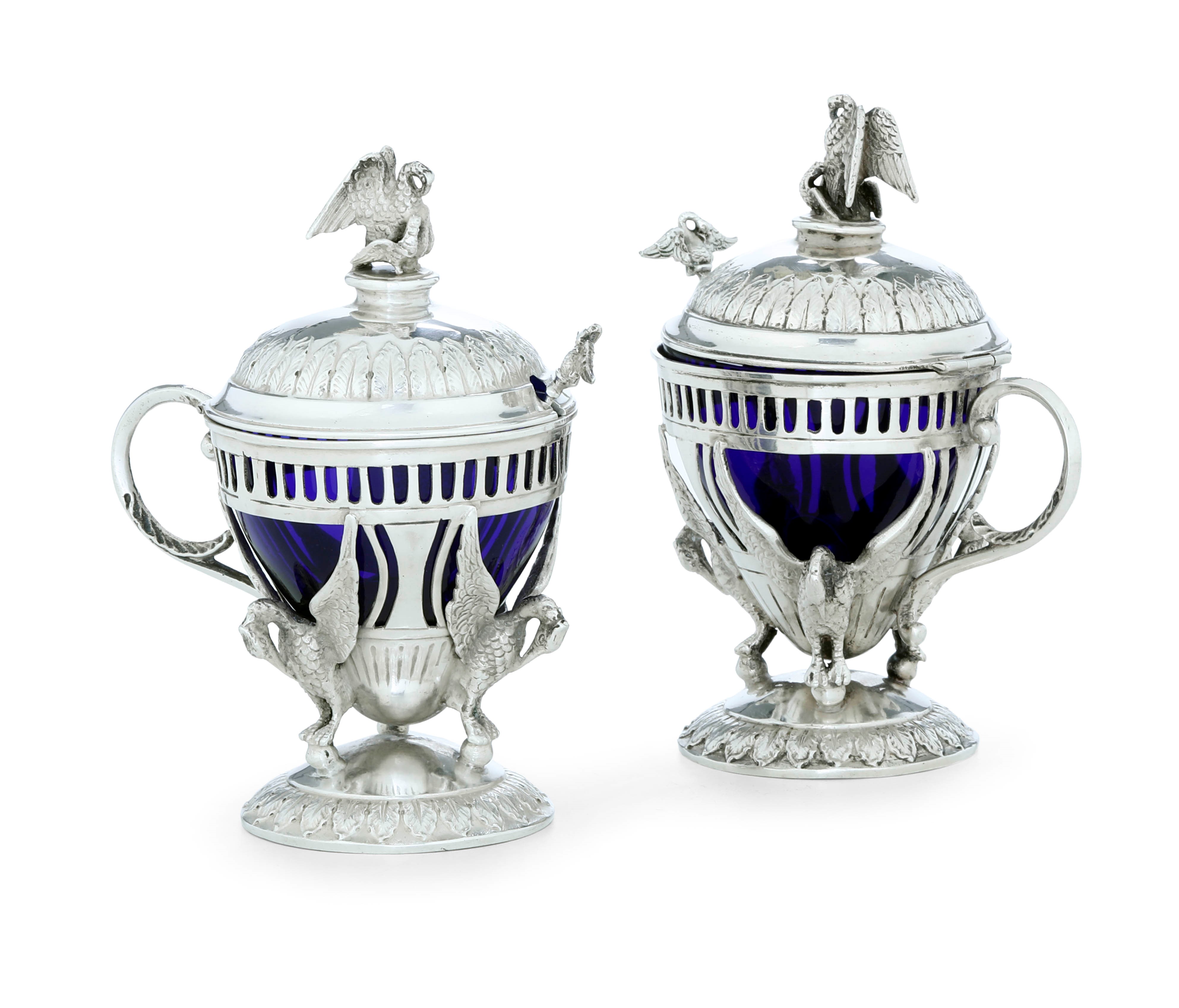 Coppia di mostardiere. Marchi ad imitazione dell'argenteria inglese. Probabilmente Hanau XIX-XX secolo