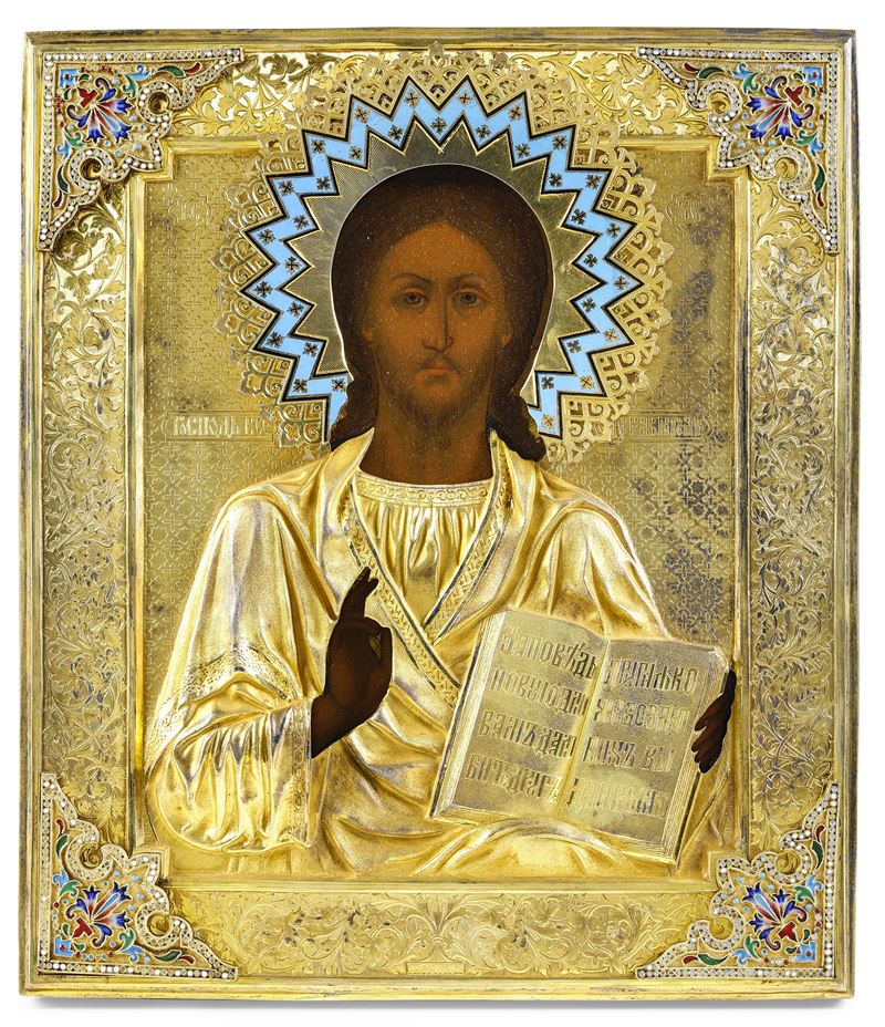 Cristo Pantocratore, Russia fine del XIX secolo, punzone Mosca 1879, saggiatore AK. Orafo Ivanov Adrian Terent’evic