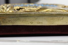 Icona tempera su tavola, riza in argento dorato e smalti