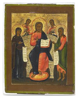 Cristo Pantocratore, San Giovanni Battista e La Deipara. Icona tempera su tavola. Europa orientale XIX secolo