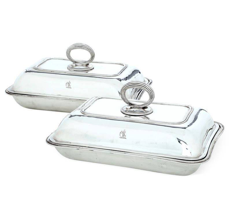 Due legumiere. Una Londra 1881, marchio dell’argentiere parziale di difficile lettura e una Londra 1838, argentiere WK Re [..]