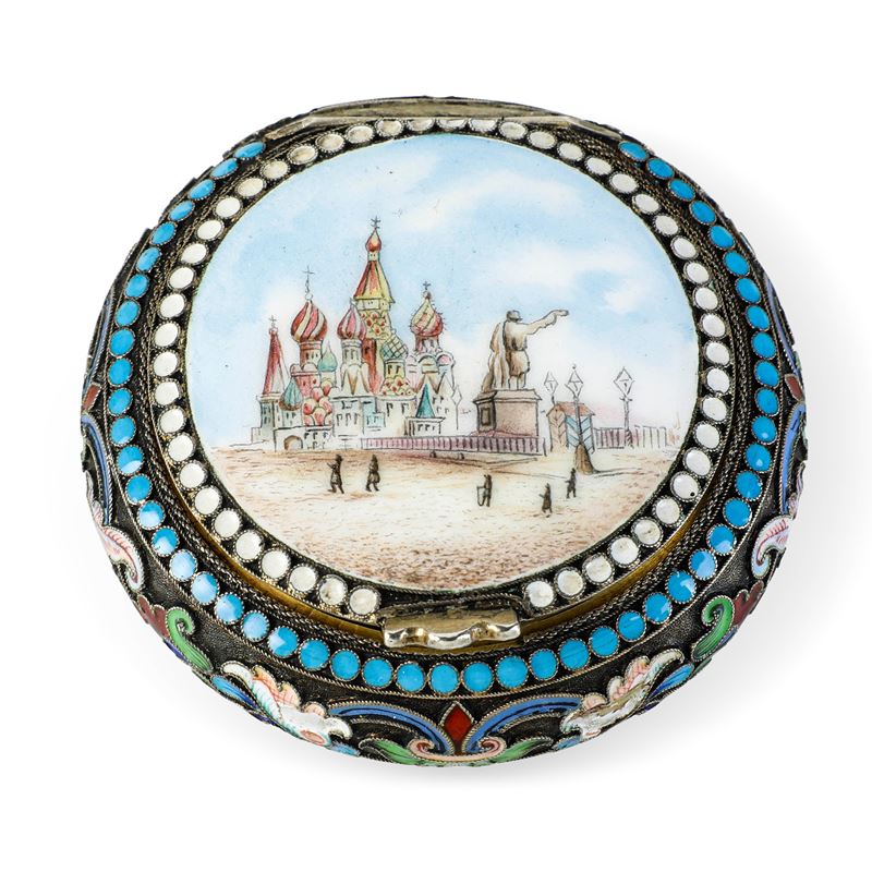Scatola smaltata. Marchi Mosca 1896-1908. Russia XIX secolo
