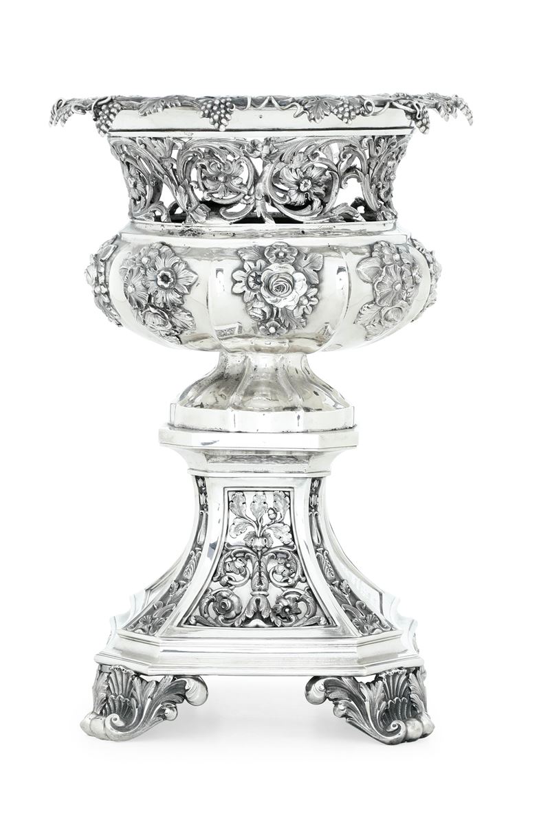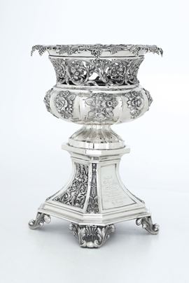Vaso centrotavola. Marchi di Birmingham probabilmente non pertinenti. Manifattura europea (Hanau?) del XIX-XX secolo