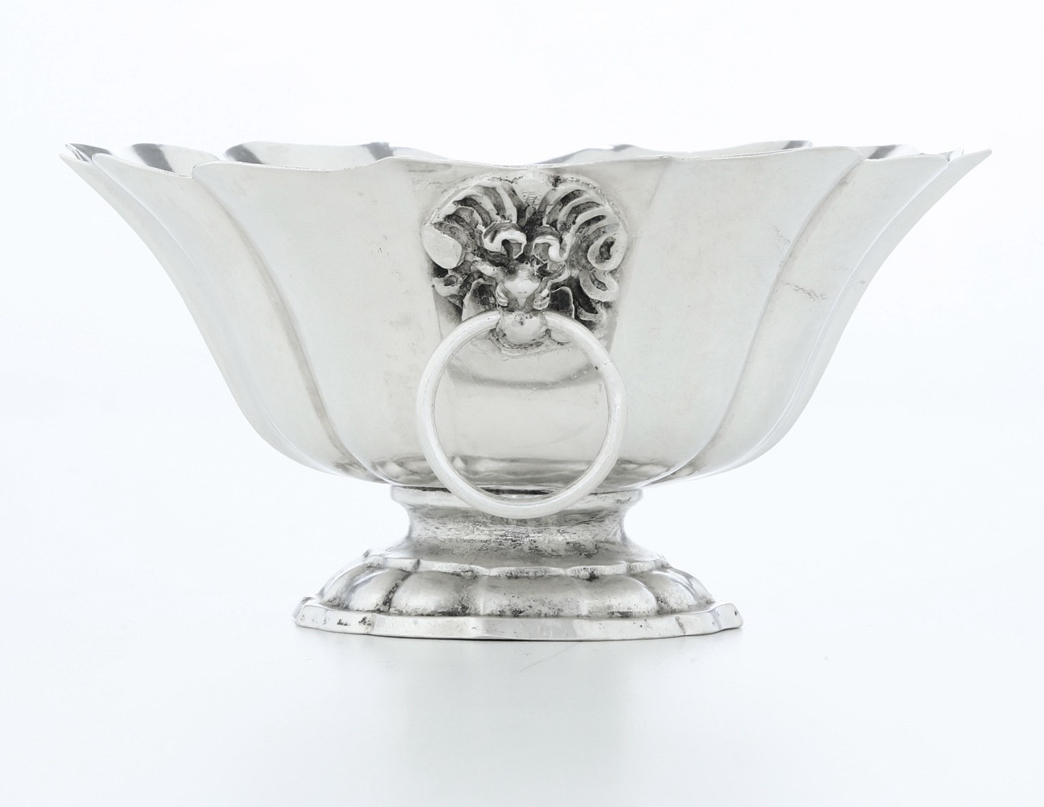 Corpo ovale a larghe costolature con ai lati protomi leonine anellate