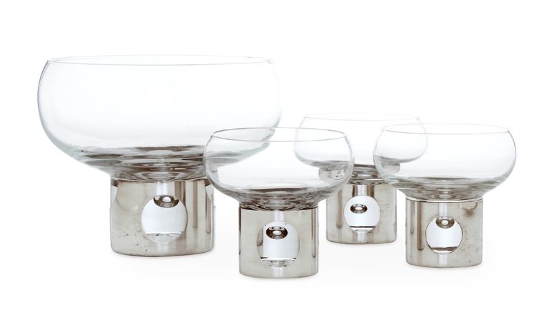Bowl e tre coppe. Argenteria milanese del XX secolo, argentiere Antonio Francesco Cella, designer James Rivière