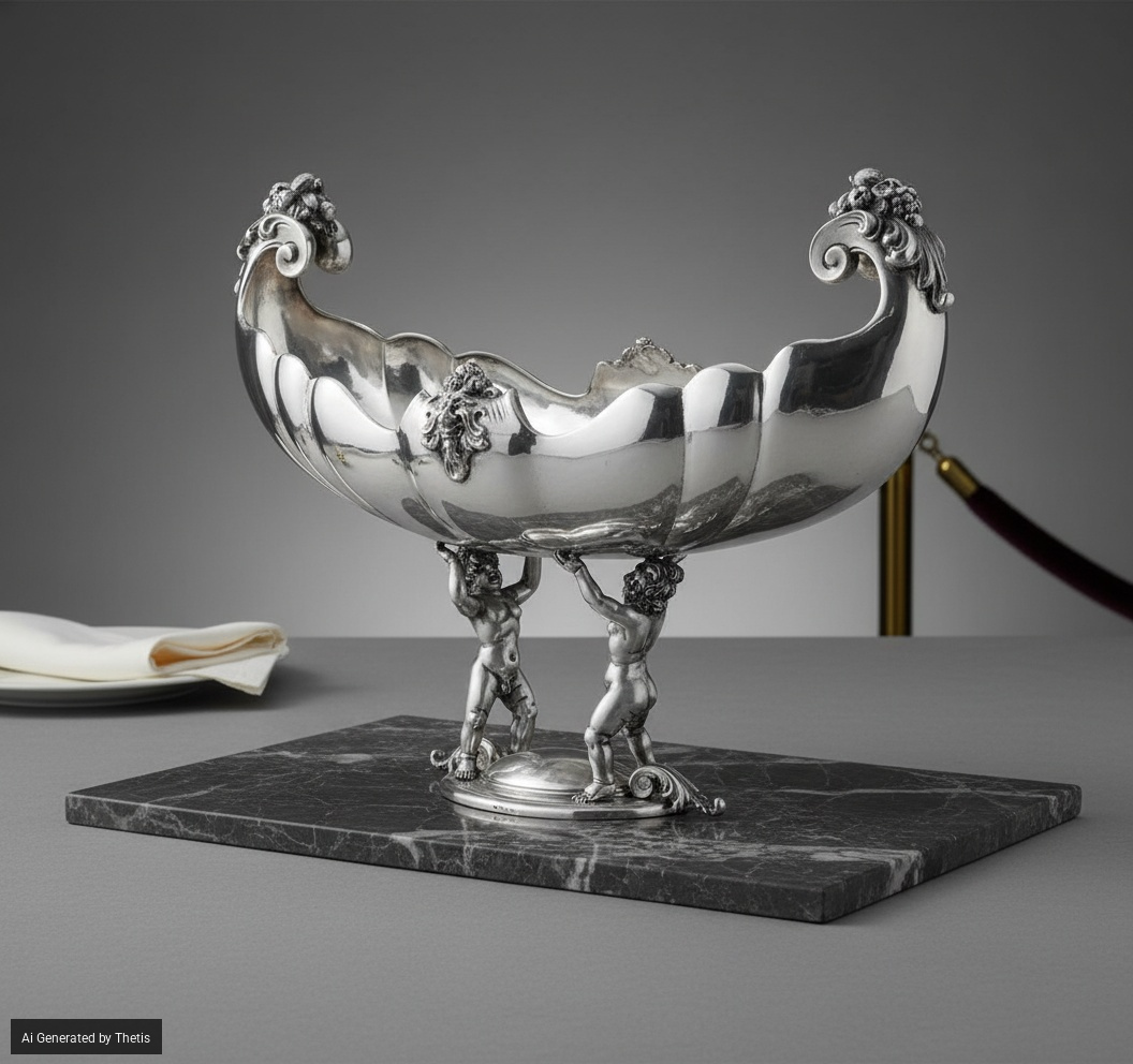 Centrotavola. Argenteria milanese del XX secolo, marchio con fascio littorio in uso dal 1935 al 1945, marchio dell'argentiere consunto