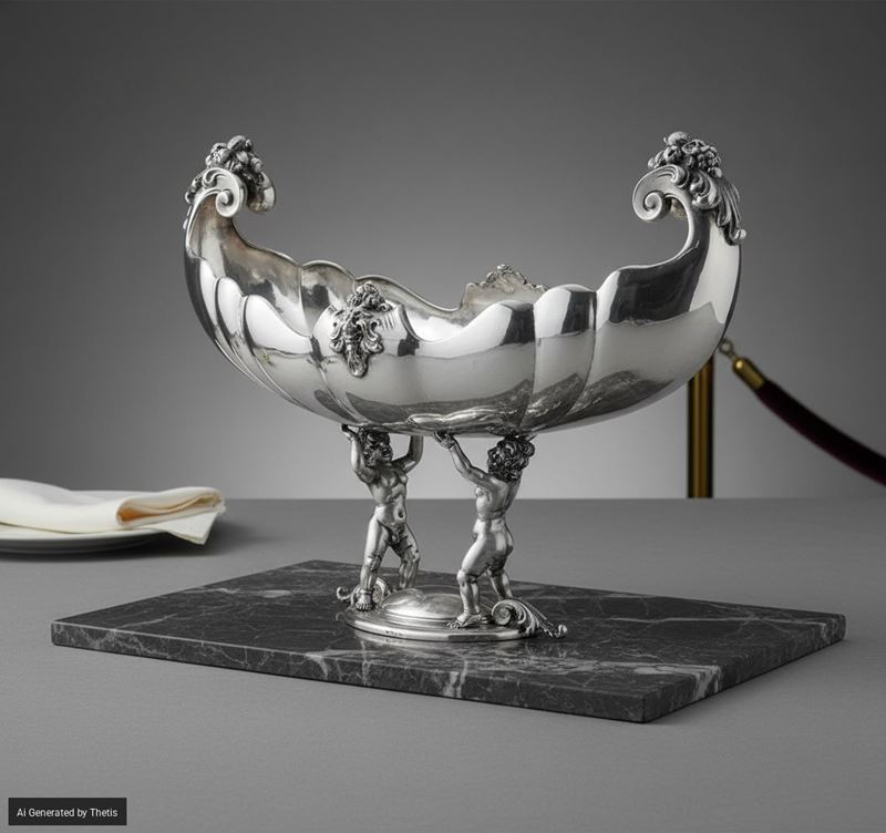 Centrotavola. Argenteria milanese del XX secolo, marchio con fascio littorio in uso dal 1935 al 1945, marchio dell'argentiere [..]