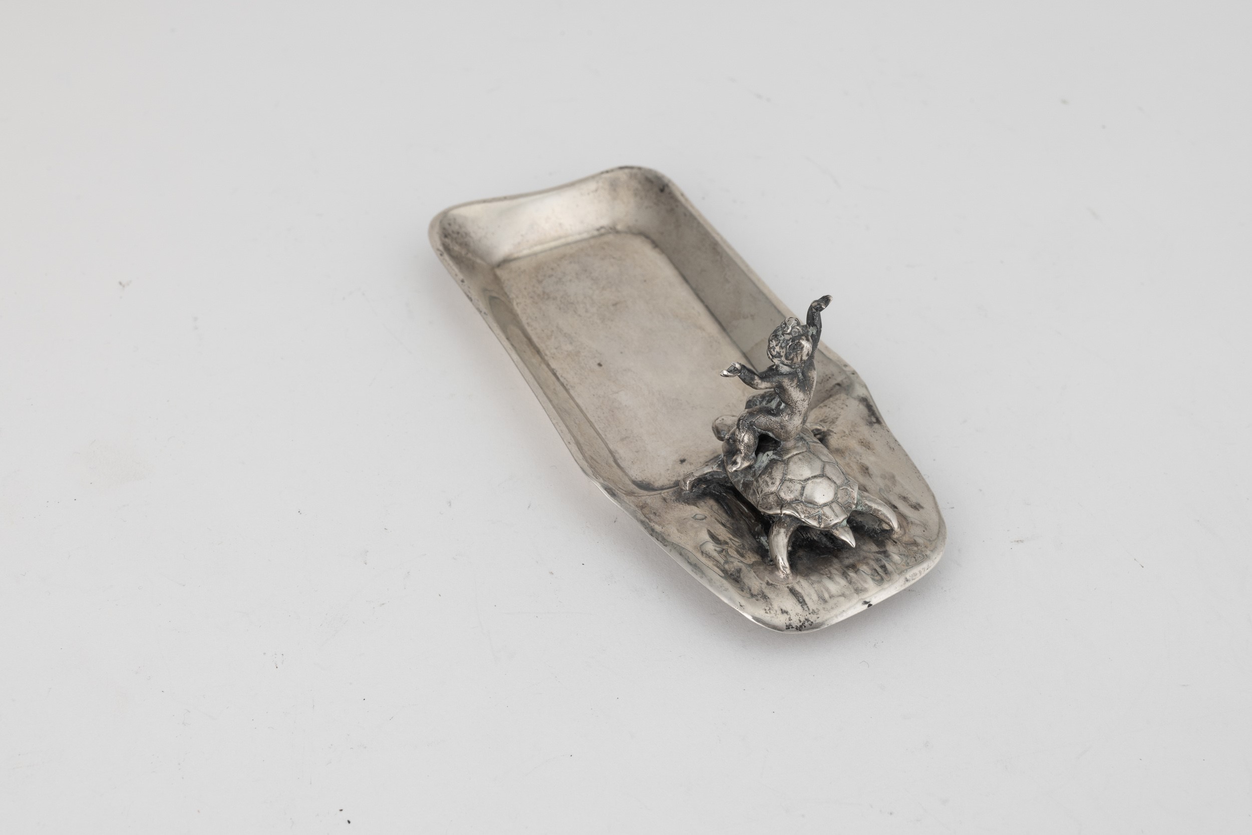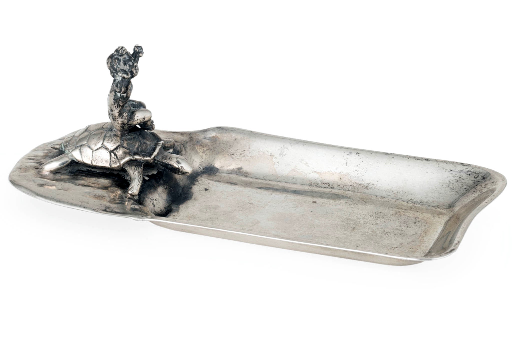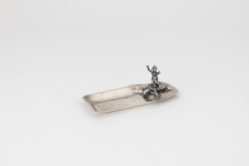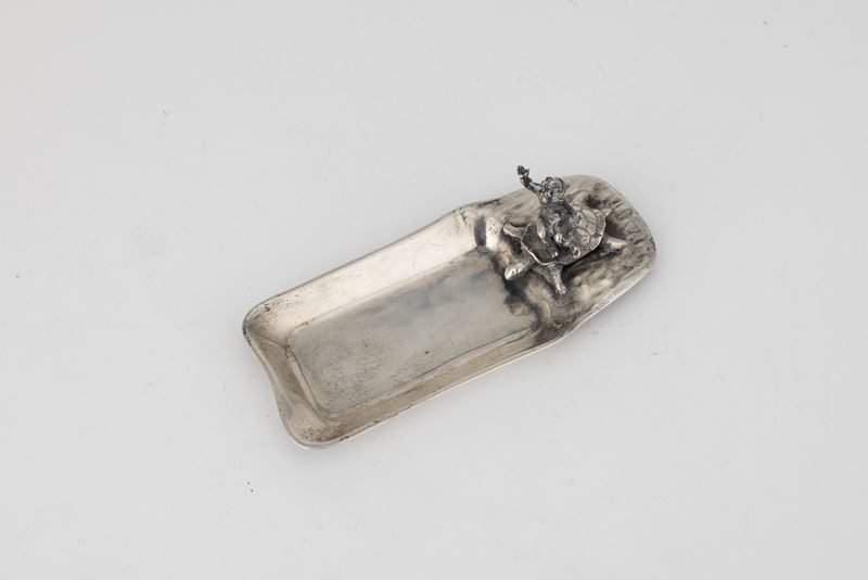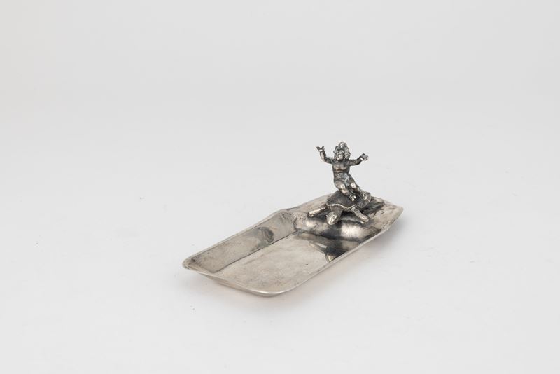 Ciotola con putto che cavalca tartaruga. Argenteria artistica milanese, argentiere Genazzi