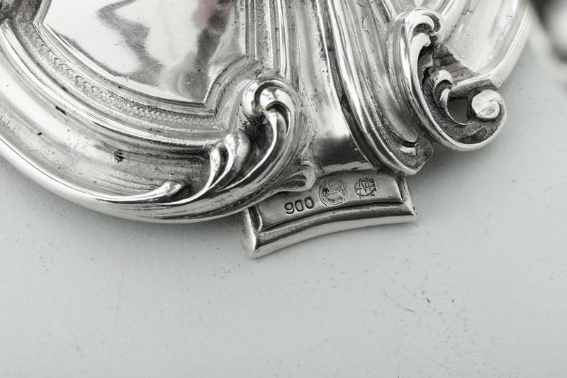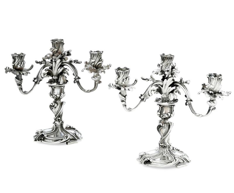 Coppia di candelabri. Argenteria artistica milanese, prima metà del XIX secolo, argentiere Messulam