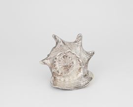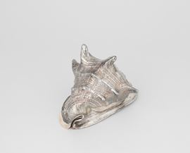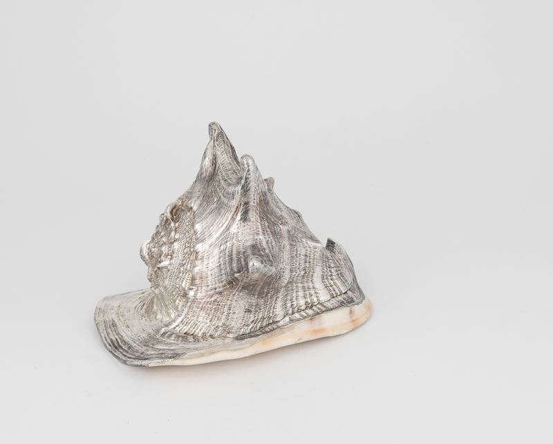 Grande conchiglia rivestita in argento, etichetta a scudo Mario Buccellati, Italia XX-XXI secolo