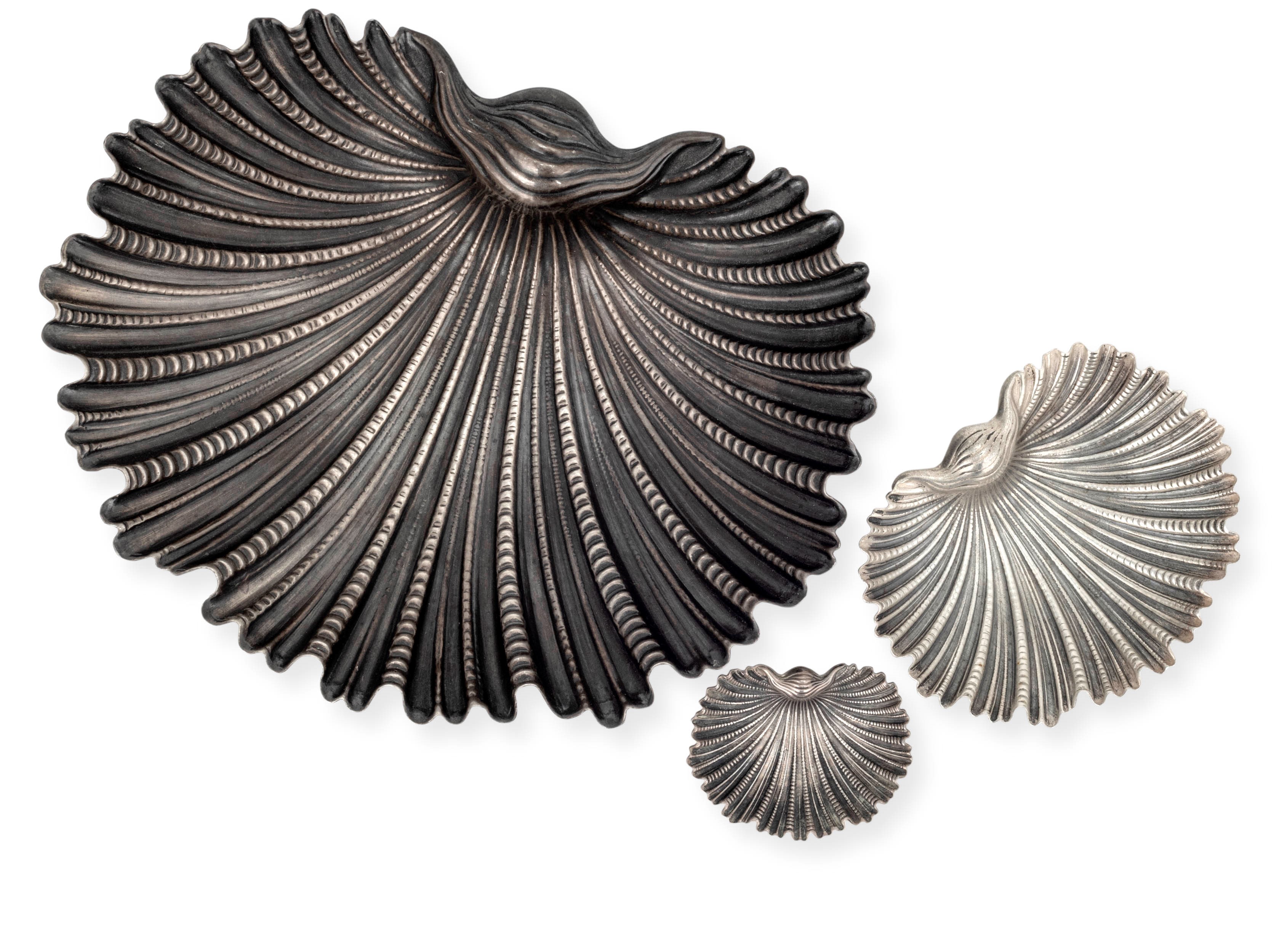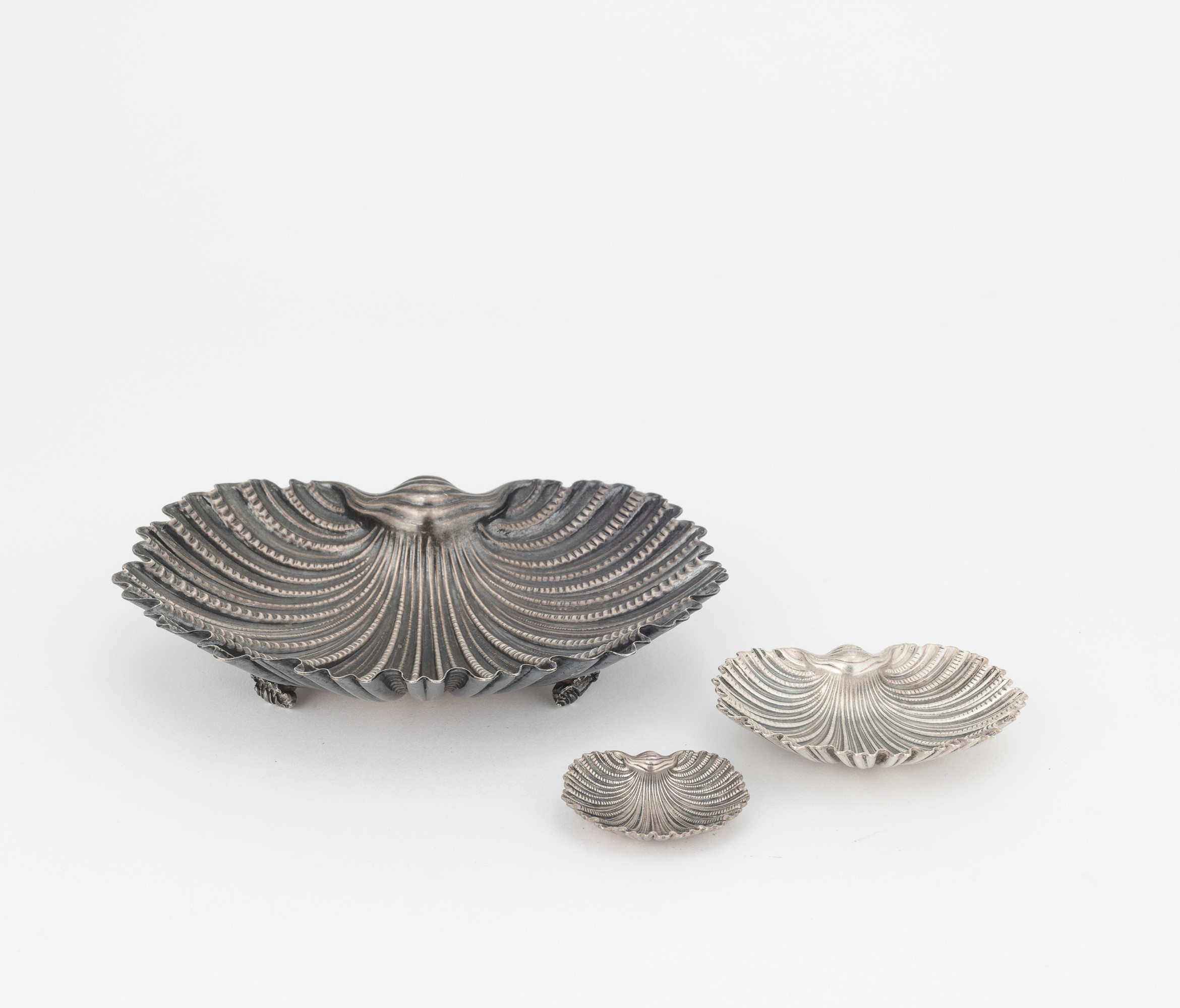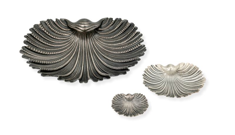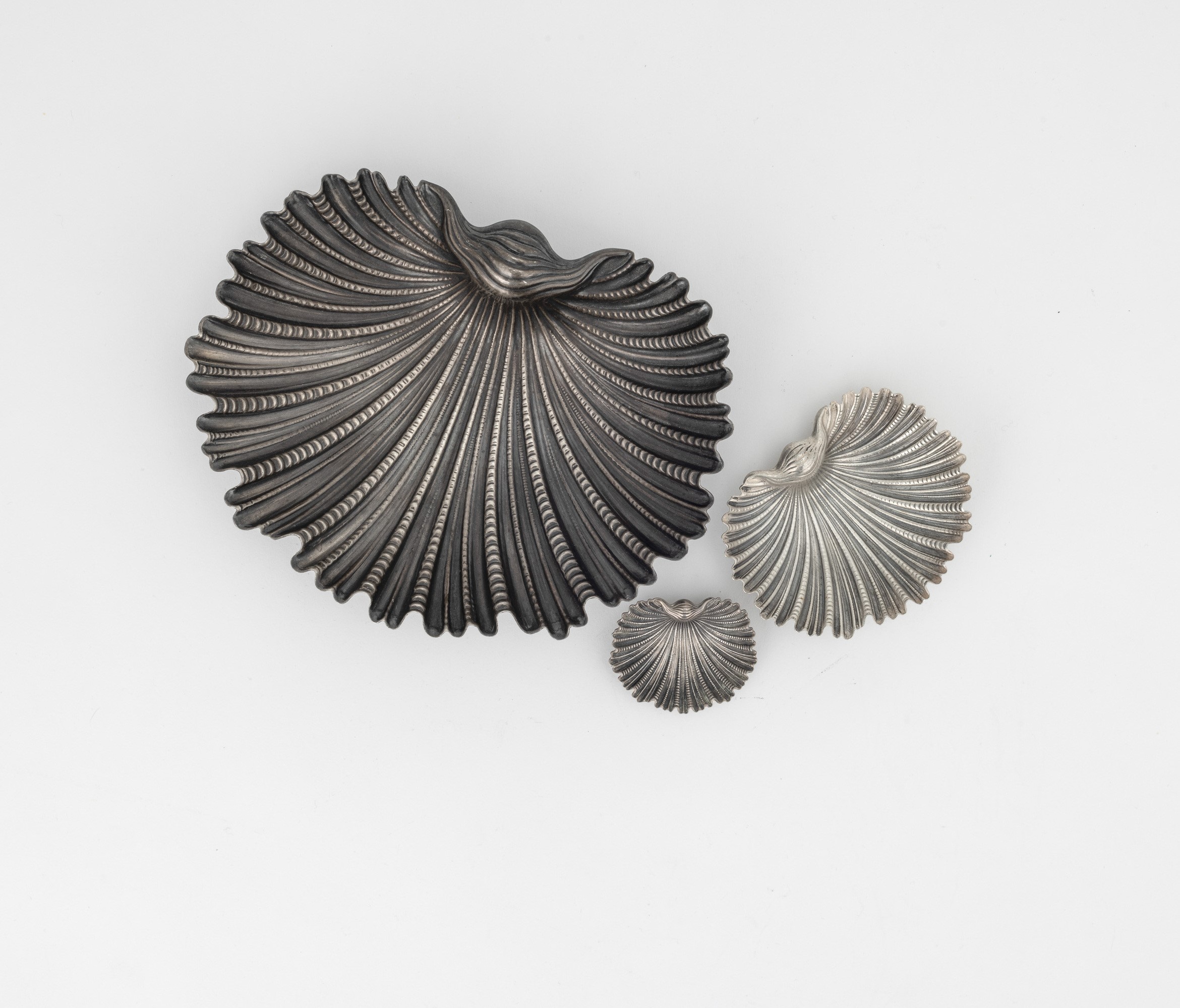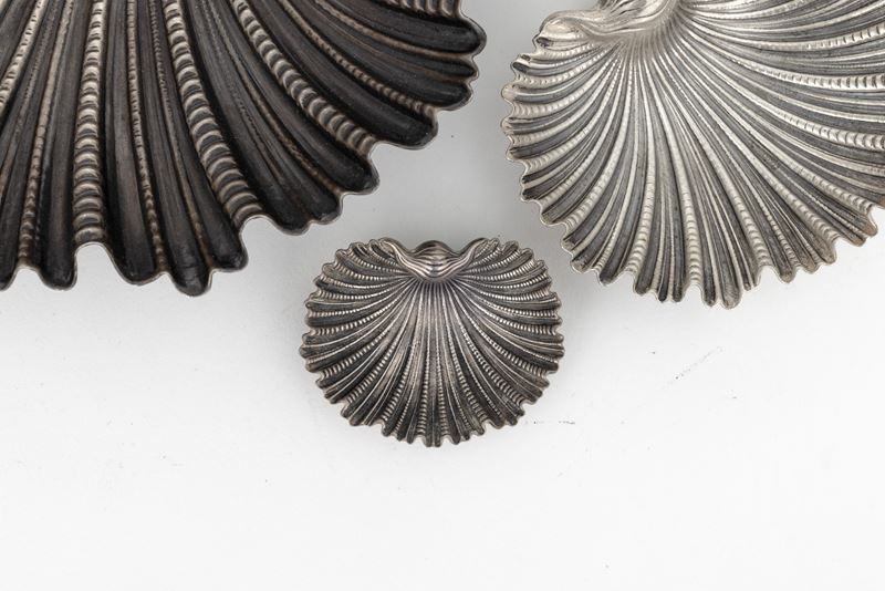 Gruppo di tre conchiglie. Maison Gianmaria Buccellati, argentiere Clementi Bologna, Italia XX-XXI secolo