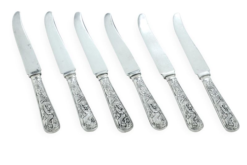 Sei coltelli da dessert con lame in argento. Cina XX secolo