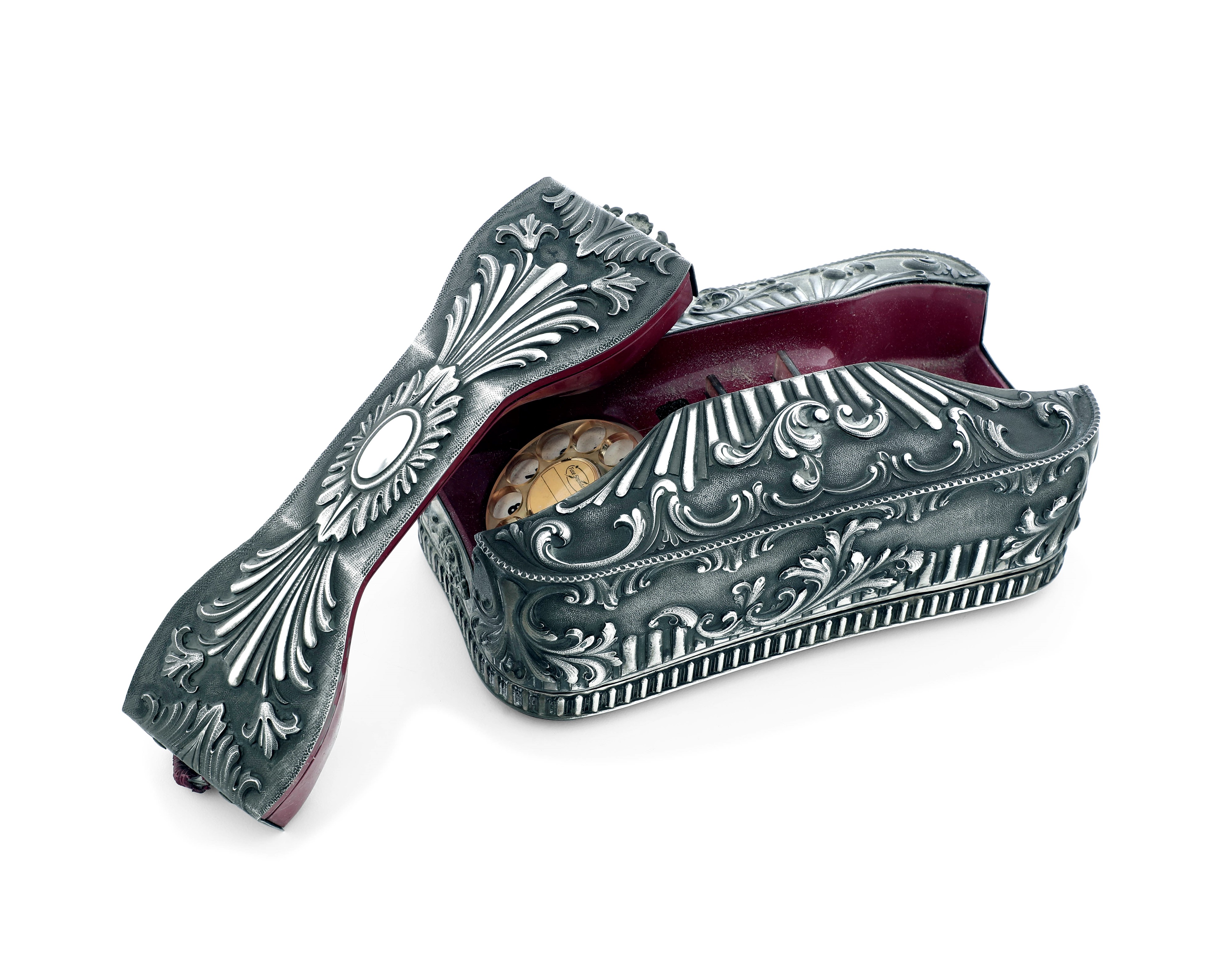 Telefono vintage con custodia in argento. Argenteria ilanese del XX secolo, argentiere Agostino Mazzuccato