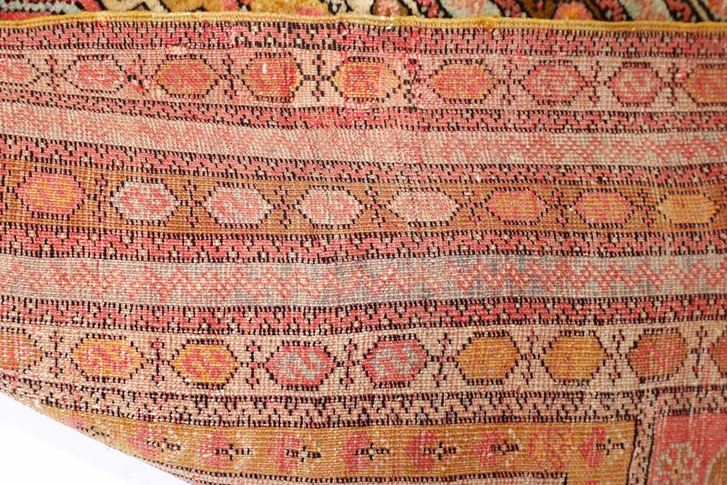 mihrab rosa in pieno vello contornata da piccoli garofani su fondo giallo