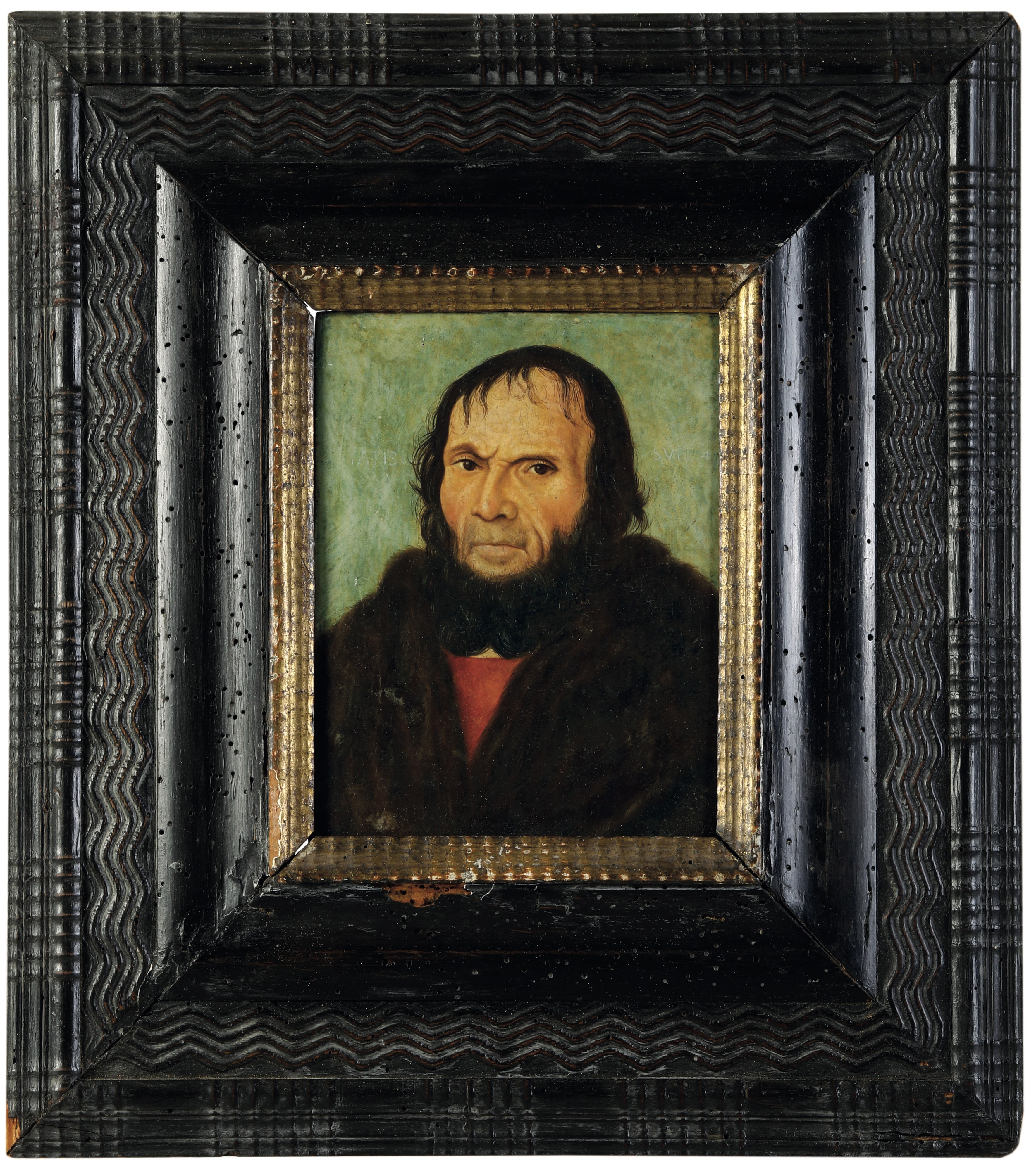 Scuola tedesca del XVI secolo Ritratto di gentiluomo con giacca di pelliccia