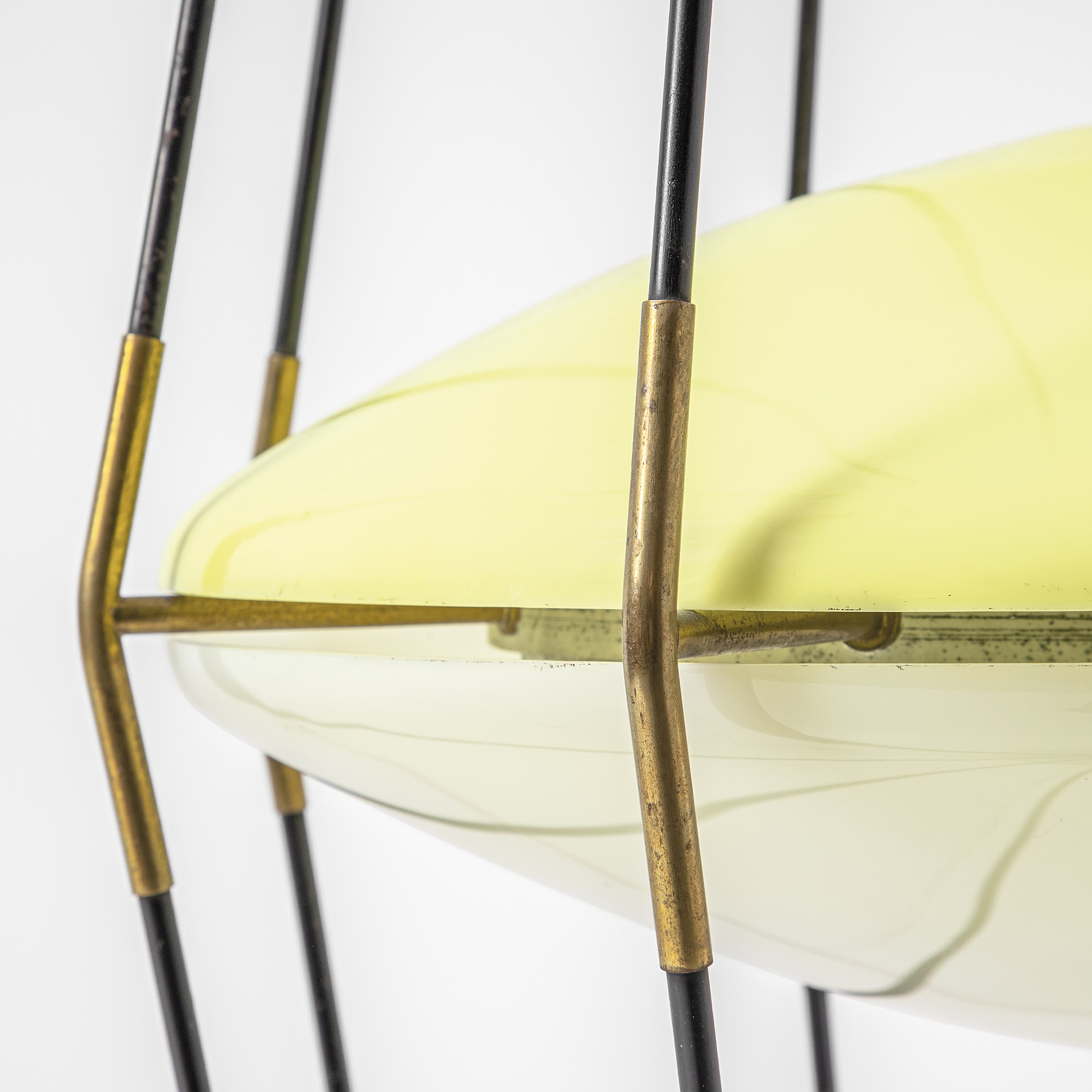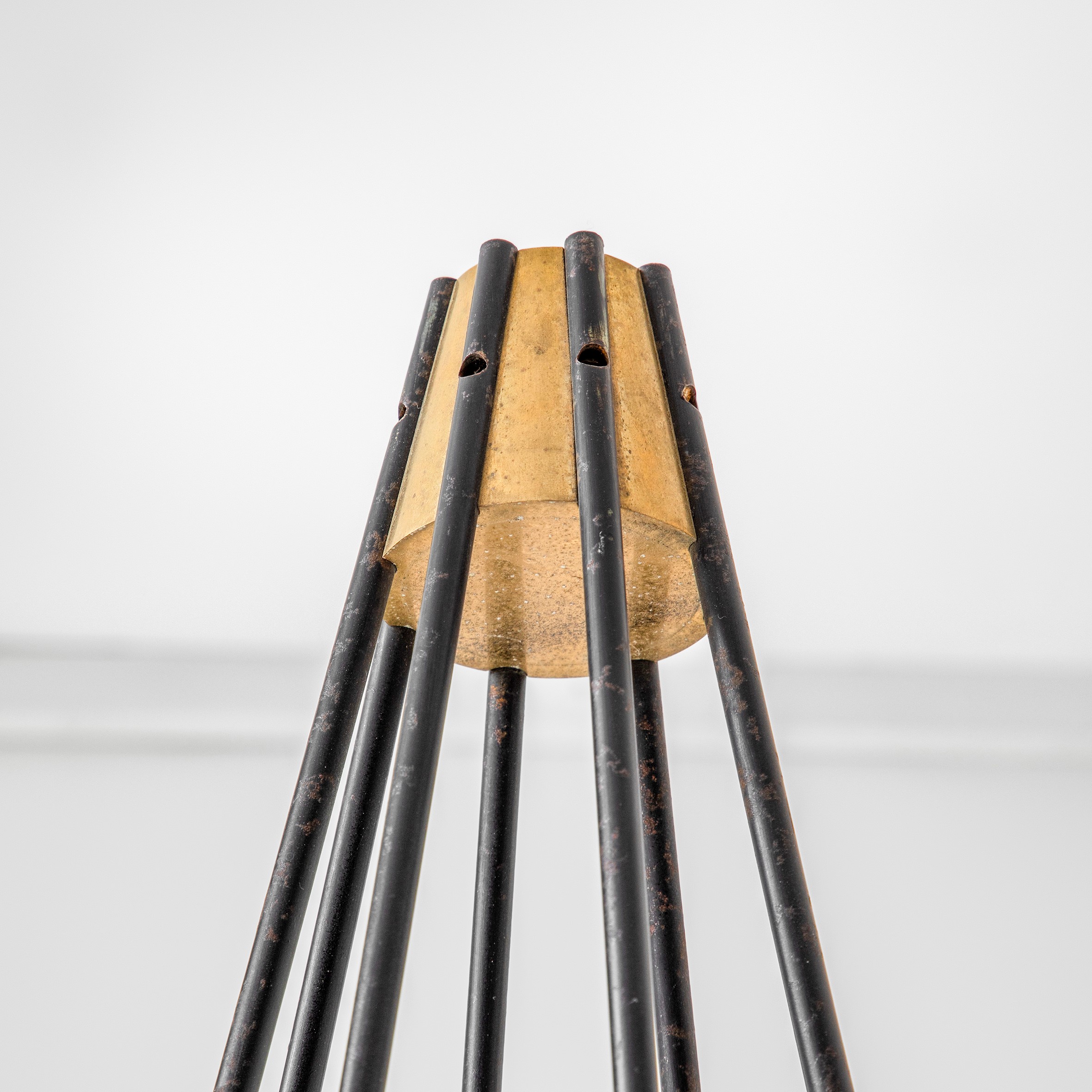 Lacquered metal structure with brass
