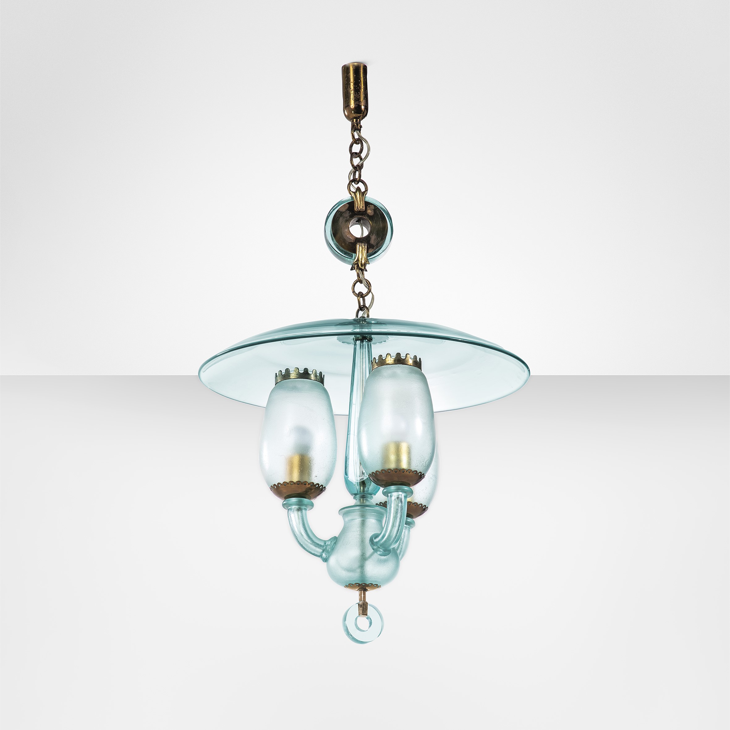 Brass structure and etched Murano glass.