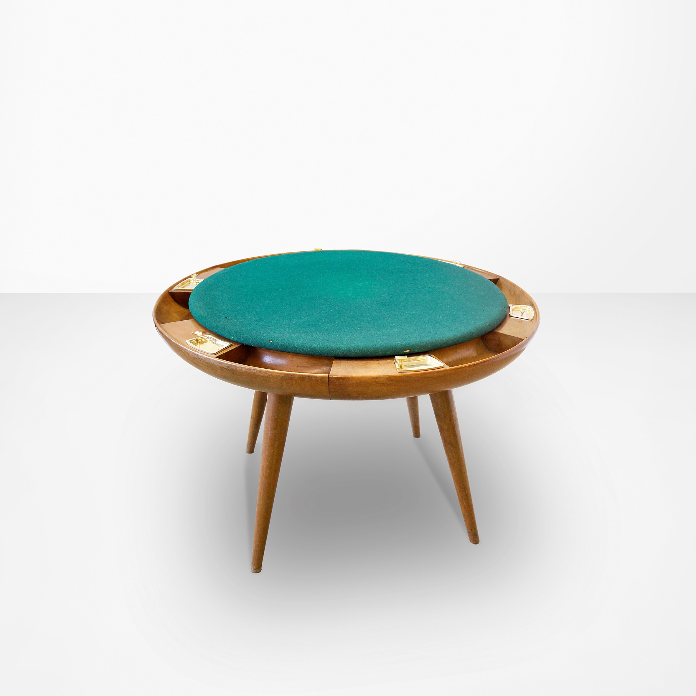 Wooden structure and green cloth-covered top. Brass ashtray.