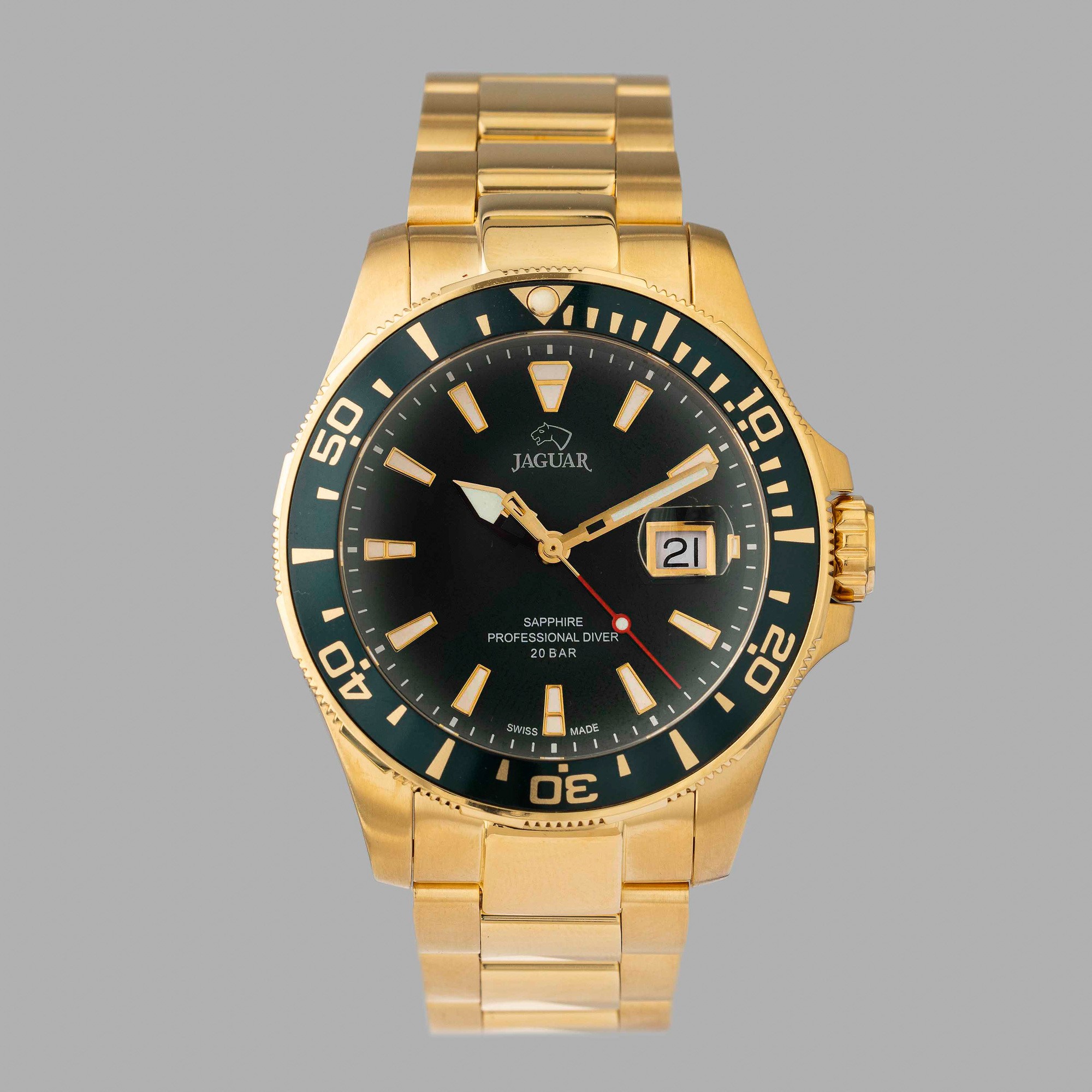 Jaguar Executive J863/4 con datario, movimento al quarzo, in acciaio laminato, 44 mm, completo di scatola