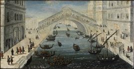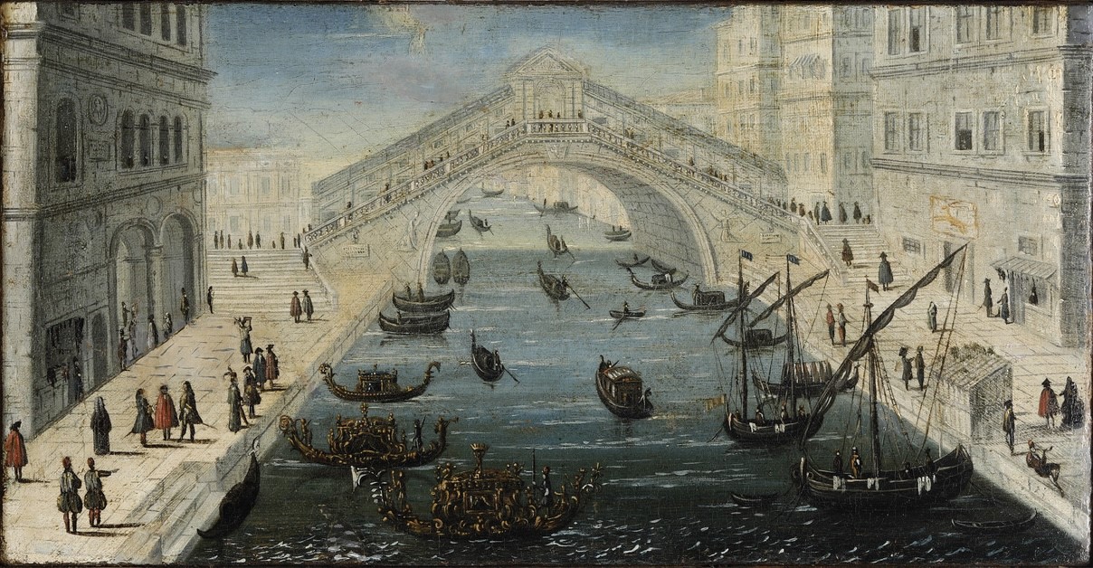 Scuola del XVII/XVIII secolo Veduta del Canal Grande con il ponte di Rialto