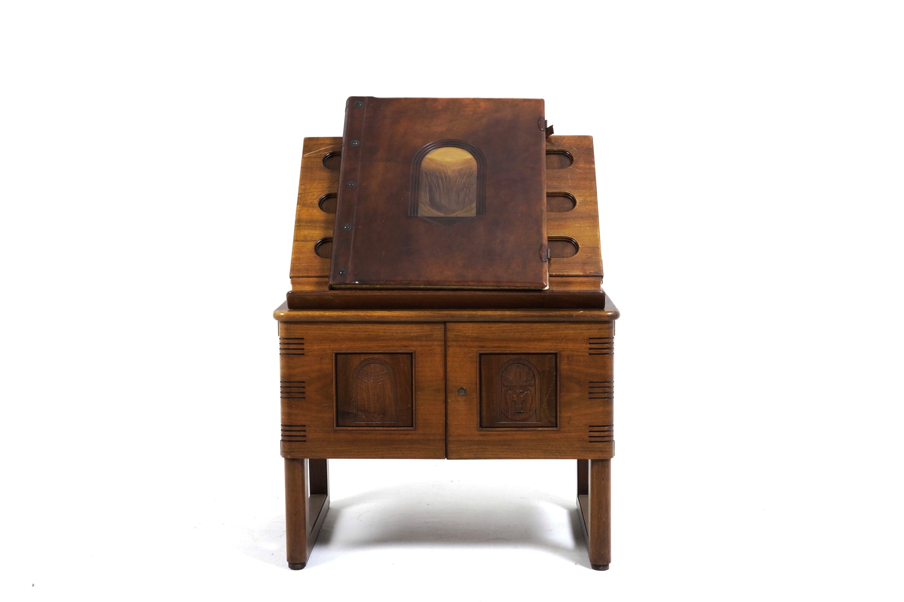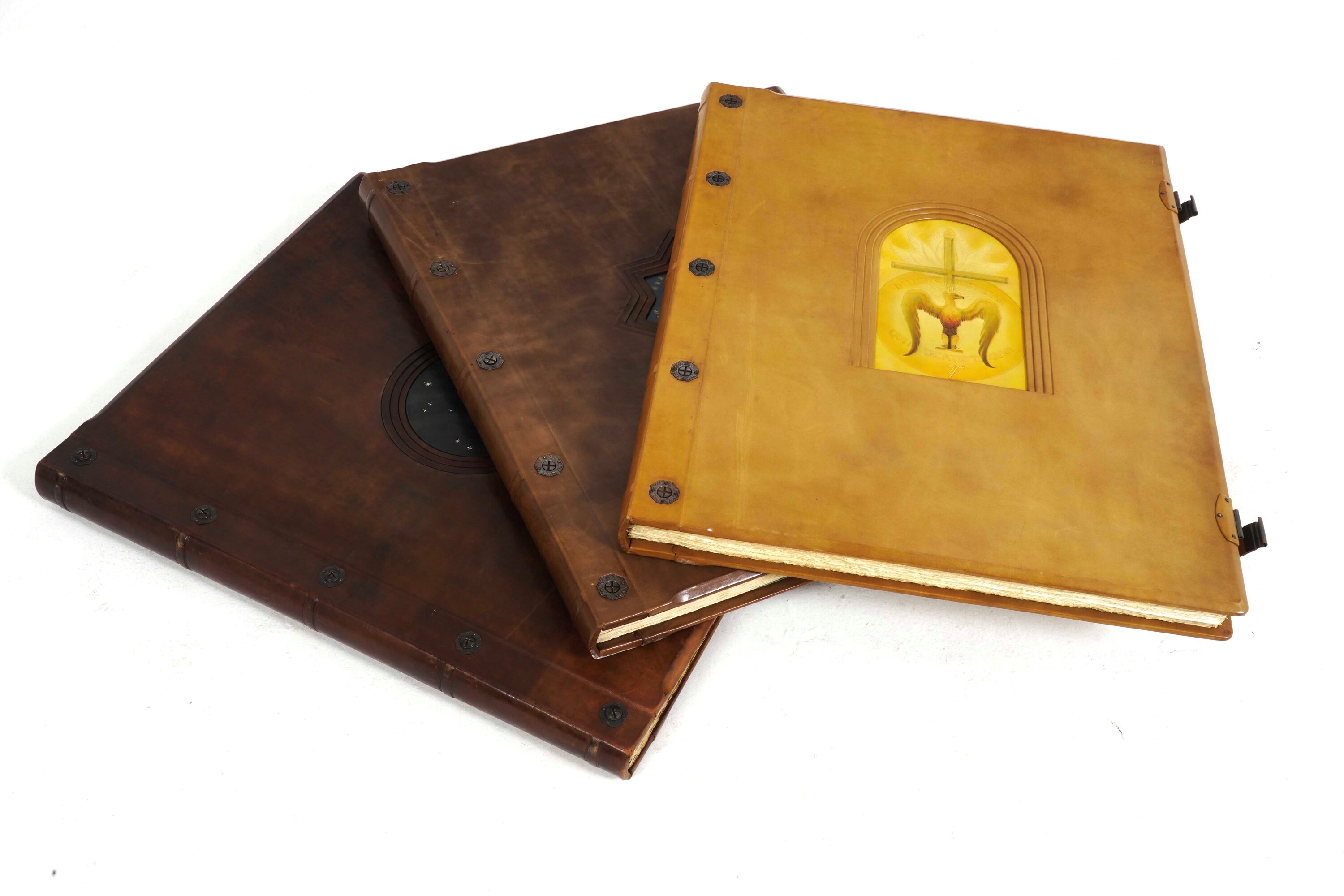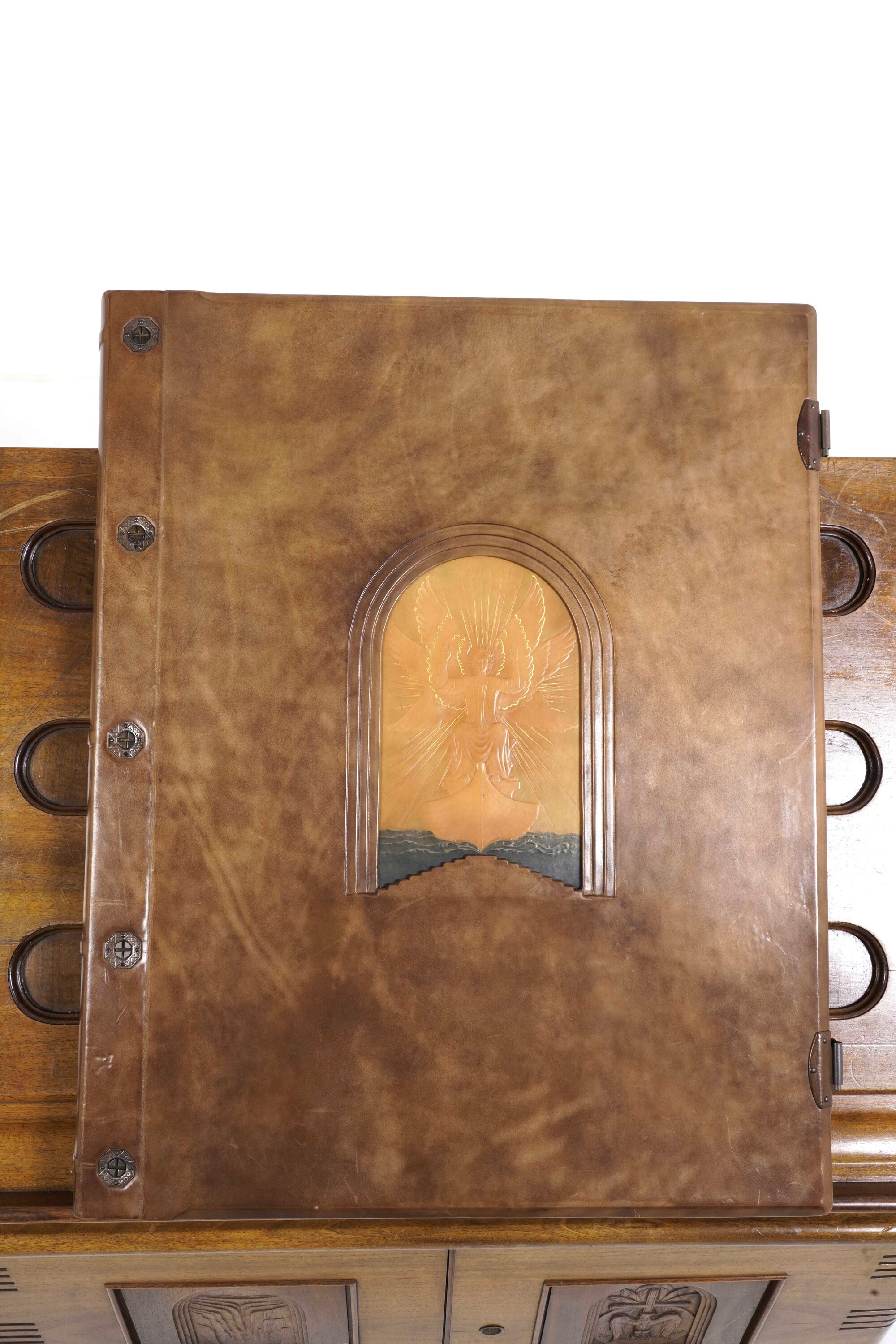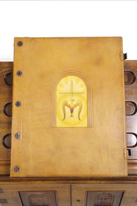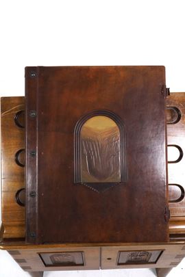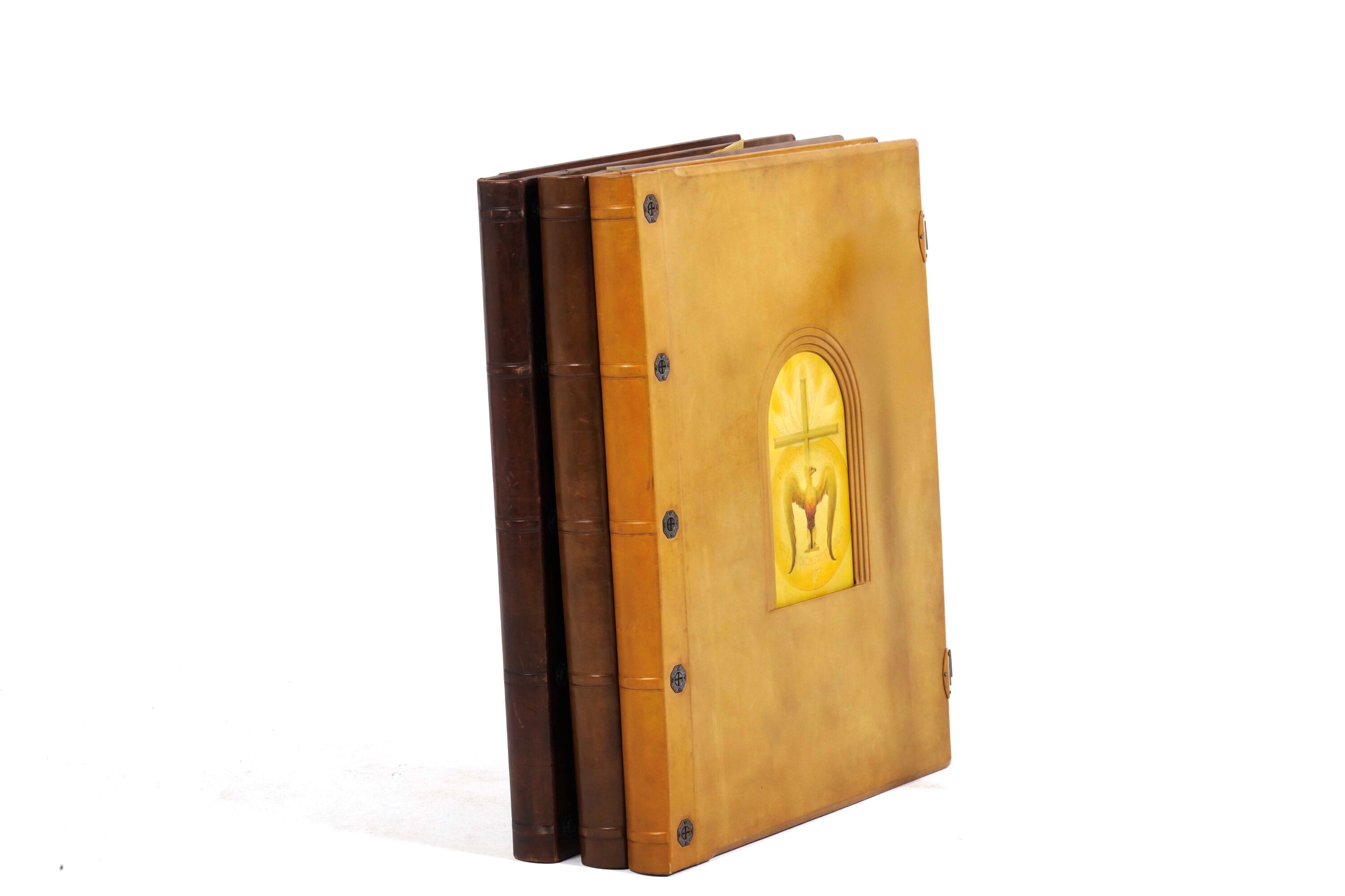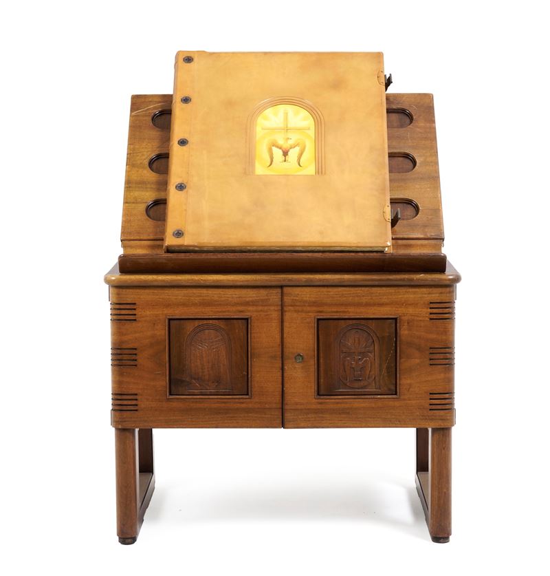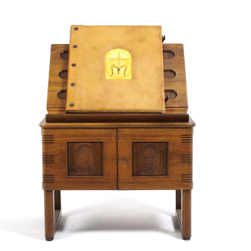 Tre volumi in-folio atlantico (82x65,5 cm). Eleganti rilegature in pelle con decorazioni distinte nelle tre cantiche. Il tutto contenuto entro mobile leggio. Il nostro esemplare purtroppo risulta scompleto degli ultimi due canti del Paradiso, questo perchè, nel 1941, gli stabilimenti tipografici furono distrutti dai bombardamenti. Nel dopoguerra, i sottoscrittori furono contattati e a loro fu proposta la completazione, ma non tutti aderirono, per ragioni ovvie e ben comprensibili.